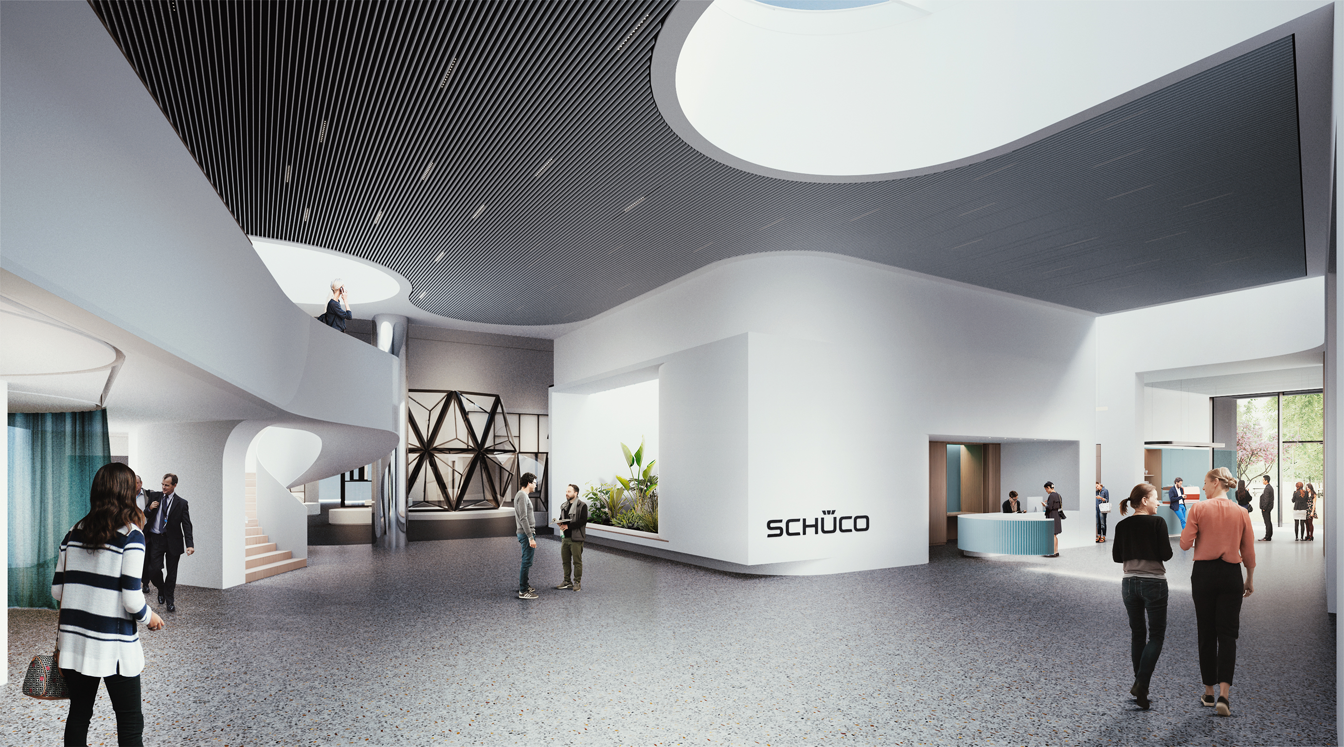 Für das Schüco Welcome Forum wird im Rahmen der standortweiten Baumaßnahmen der Showroom erweitert und zu einem modernen Besucherzentrum umgebaut. Durch den nachhaltigen Ansatz des Erweiterungsbaus werden möglichst viele Materialien vom bisherigen Bestand des Showrooms wiederverwertet. Die Abrissarbeiten von Teilen des alten Gebäudes sind bereits abgeschlossen. Anfang 2021 soll der Entwurf des Düsseldorfer Architekturbüros one fine day auf einer Grundfläche von 4.654 Quadratmetern fertiggestellt werden. Andreas Engelhardt betonte den besonderen Stellenwert des neuen Besucherzentrums: „Das Schüco Welcome Forum ist das Herz von Schüco und dieses Herz schlägt für unsere Gäste. Hier kommt zusammen, was zusammen gehört: Architekten, Verarbeiter, Investoren, Bauherren und Schüco. Unser neues Besucherzentrum ist die ideale Plattform, um mit neuen Kundinnen und Kunden in Kontakt zu treten und bestehende Kontakte zu stärken. Denn wir schätzen das persönliche Gespräch und setzen auf einen engen Austausch untereinander. Deshalb laden wir unsere Gäste ein, sich in unserem neuen Besucherzentrum live und vor Ort von der Schüco Welt zu überzeugen.“