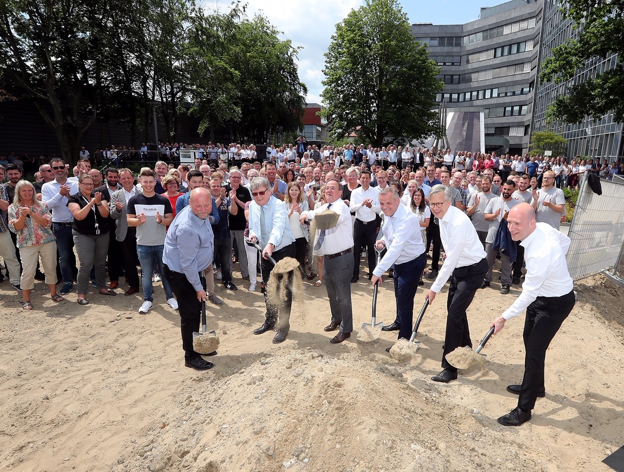 (pressebox) (Bielefeld, 02.07.2019) Am 1. Juli wurde symbolisch der erste Spatenstich des Schüco Welcome Forum gesetzt und damit offiziell der Startschuss des Baus für das „Herz von Schüco“ gegeben. Das neue Besucherzentrum ist ein weiterer Bestandteil des größten eigenen Neubau- und Sanierungsprojektes, für das rund 95 Millionen EUR bereitgestellt werden. Zu diesem Anlass empfing Andreas Engelhardt, persönlich haftender Gesellschafter der Schüco International KG, den NRW-Ministerpräsidenten Armin Laschet und die Bielefelder Schüco Belegschaft. Nach Ansprachen von Andreas Engelhardt und Ministerpräsident Armin Laschet erfolgte feierlich der erste Spatenstich für das Schüco Welcome Forum.
