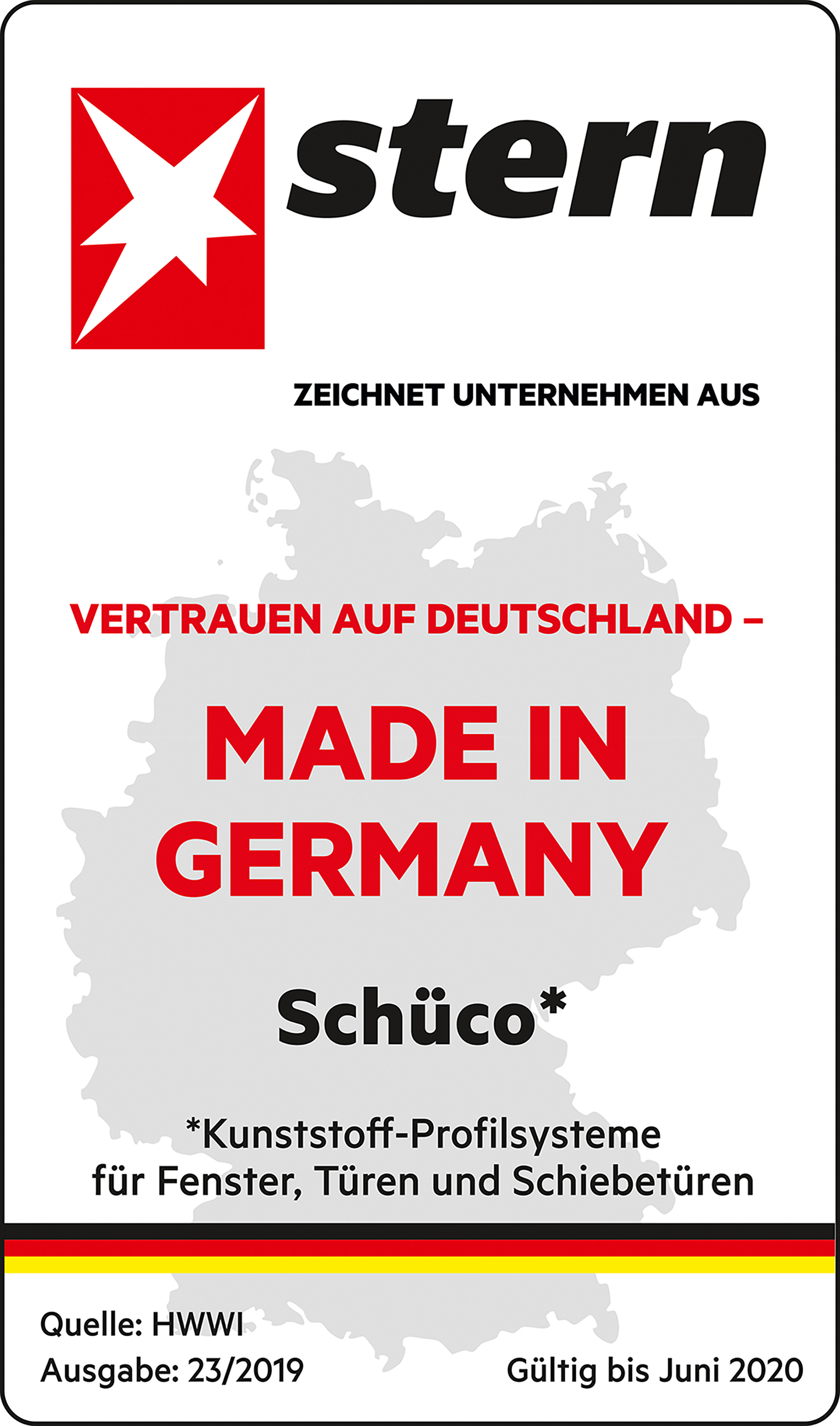 (pressebox) (Bielefeld, 15.08.2019) Für das Vertrauen in ihren deutschen Unternehmensmittelpunkt mit Entwicklung, Produktion, Qualitätssicherung und Supply Chain erhielt die Schüco Polymer Technologies KG das stern-Siegel „Made in Germany“. Der stern und Experten des Hamburger Weltwirtschaftsinstituts (HWWI) haben im Rahmen einer Studie zum Thema „Vertrauen auf Deutschland“ mehr als 300 deutsche Firmen untersucht. Nun wurden die Unternehmen ausgezeichnet, deren Fertigungstiefe hierzulande mehr als 50 Prozent beträgt.