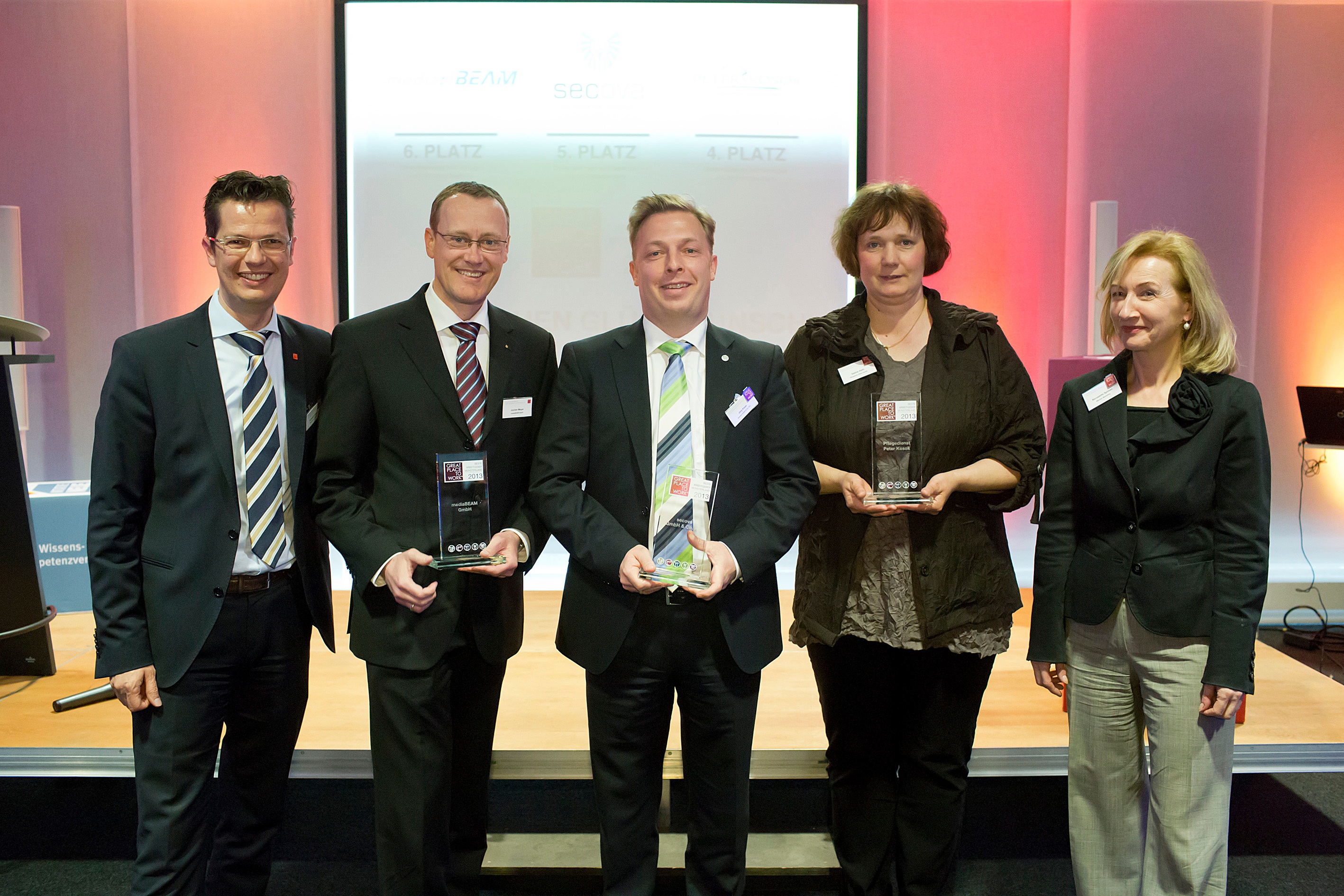 Das jüngste Sahnehäubchen konnte secova im Rahmen des Wettbewerbs "Beste Arbeitgeber im Münsterland" setzen, der vom Great Place to Work Institut veranstaltet wird. "Wir freuen uns auch regional zu den besten Arbeitgebern zu zählen", so Jörg Klaas. "Die Auszeichnung Great Place to Work - Münsterland 2013 ist eine wunderbare Anerkennung und Wahrnehmung für alle secova-Teamkollegen - darüber freuen wir uns sehr!"