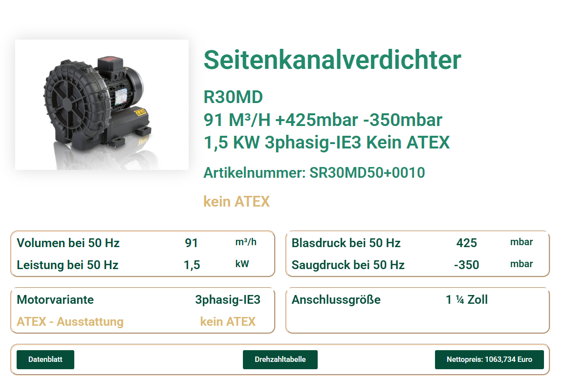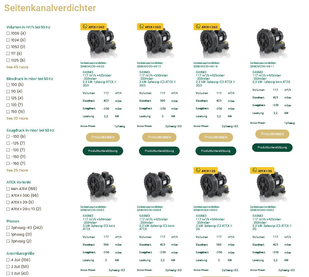 Die Internetseite zum Seitenkanalverdichter