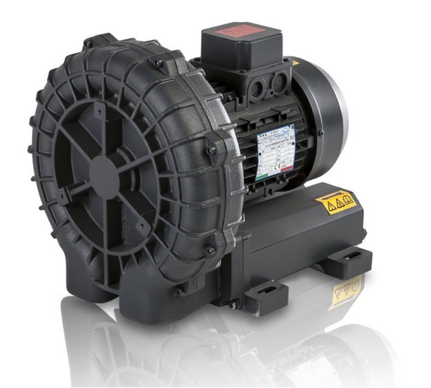 Seitenkanalverdichter (SKV): Der Verdichter ist für die Bereitstellung des erforderlichen Drucks oder Vakuums verantwortlich, um Material und Luft durch das System zu transportieren.