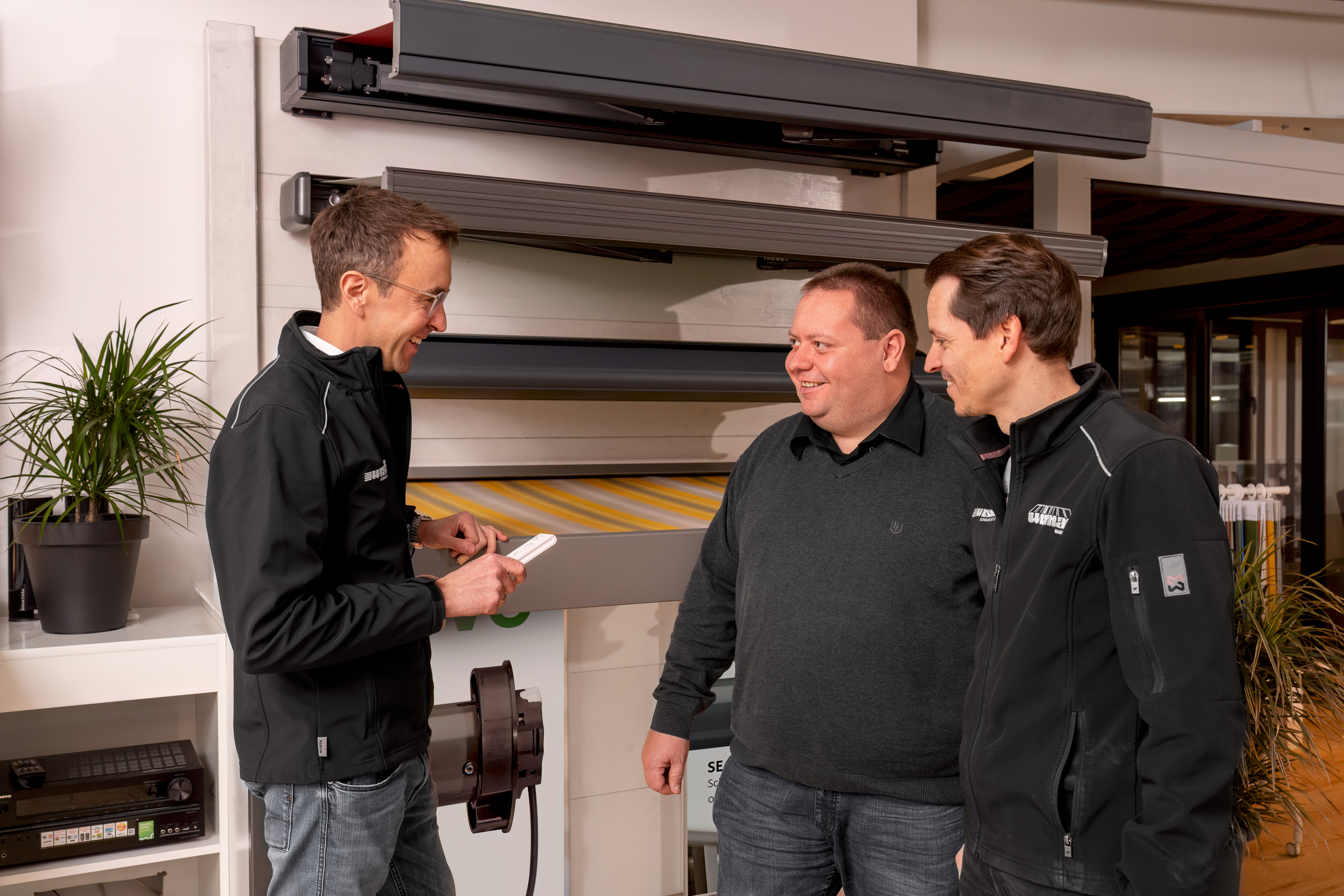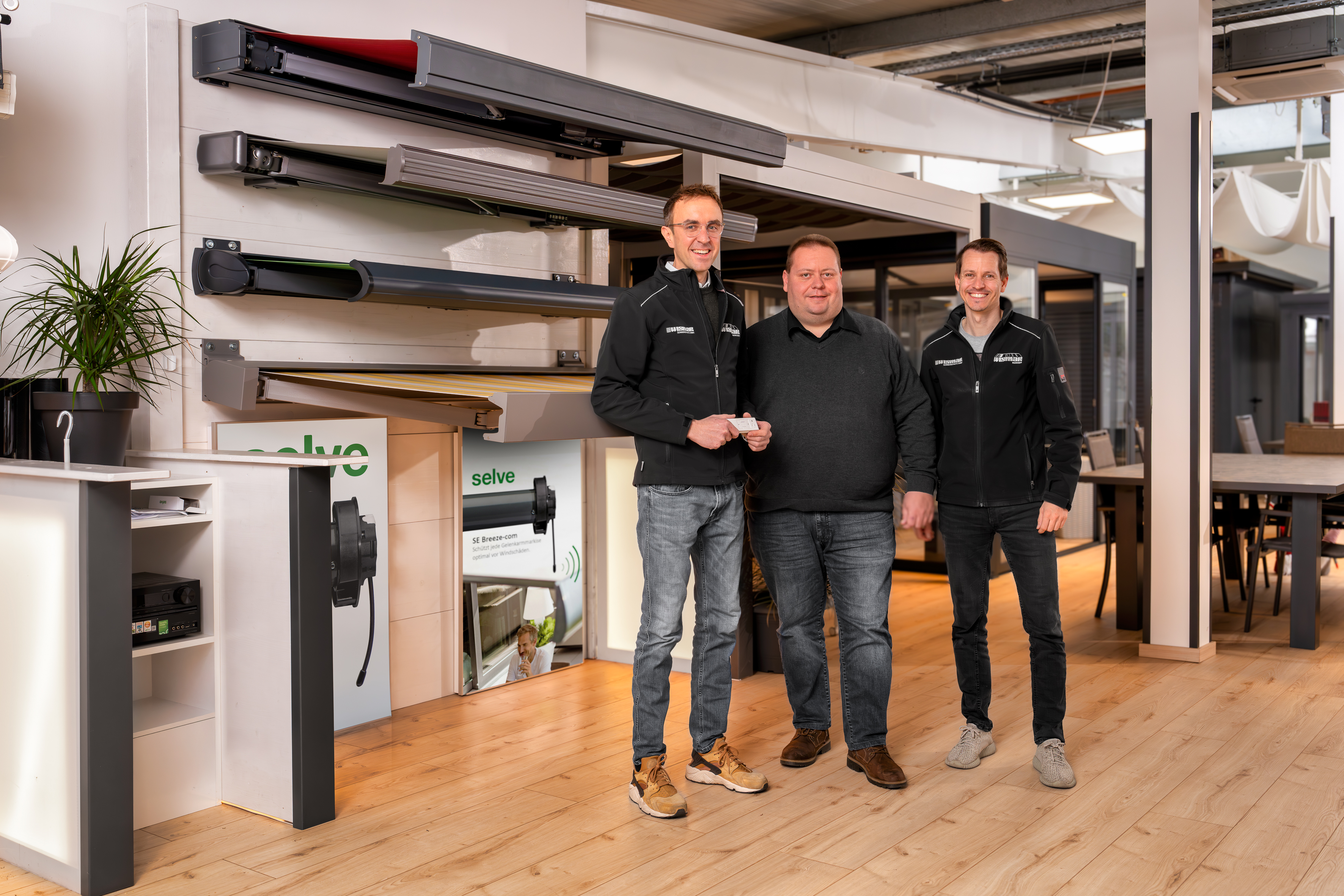 Schon bei der ersten Vorstellung des SE Breeze-com durch den SELVE-Außendienst vor rund zwei Jahren war der Geschäftsleitung schnell klar, „dass wir dieses geniale Produkt mit in unser Programm aufnehmen müssen“, erzählt Andreas Rebscher. Gesagt, getan. Zuvor hatte das Unternehmen die innovativen Funktionen des Markisenmotors in Heddesheim ausgiebig getestet und auch seinen Fachhändlern bei Schulungen als äußerst interessante Neuheit vorgestellt.