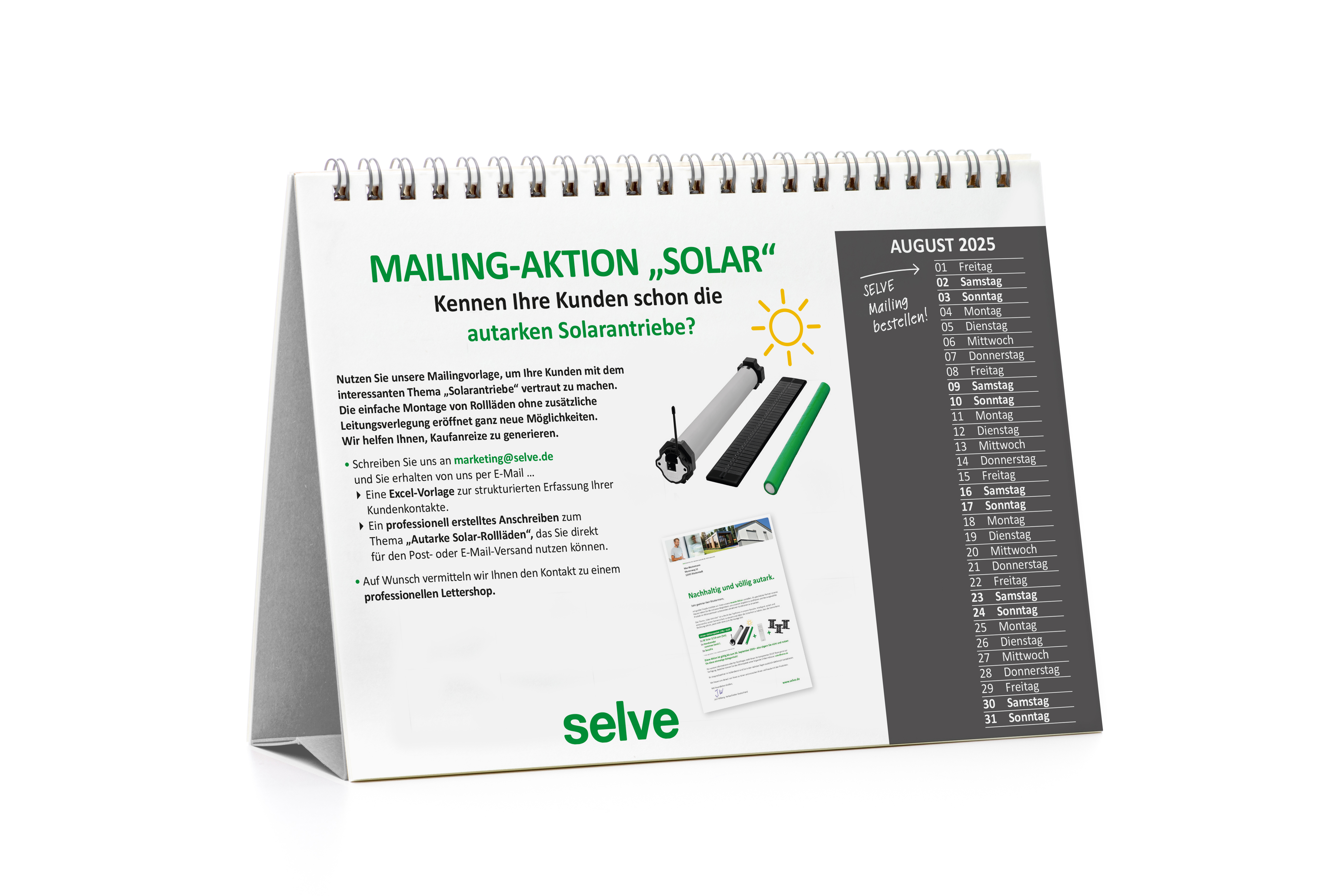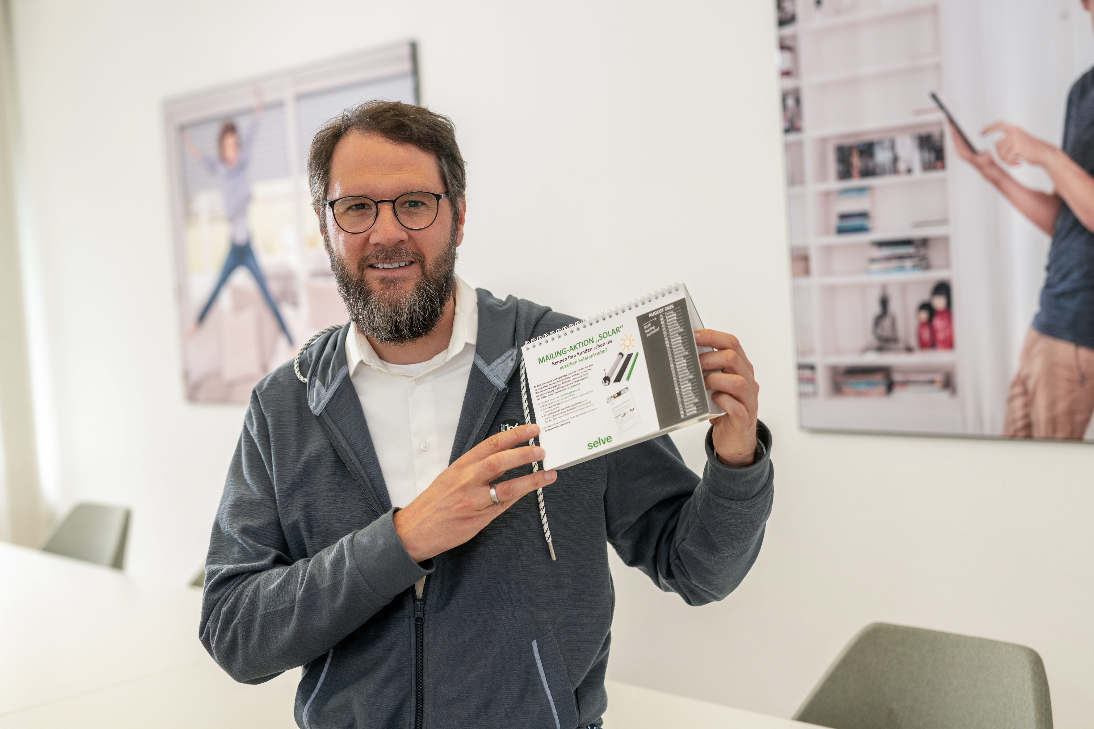 Printmedien zur gezielten Kundenansprache: personalisierte Endverbraucherbroschüren, Florpost-Aktionen zu Themen wie Modernisierung oder Solar-Rollläden sowie Brief-Mailings mit Produktvorteilen, z.B. zum neuen SELVE Home Server 3