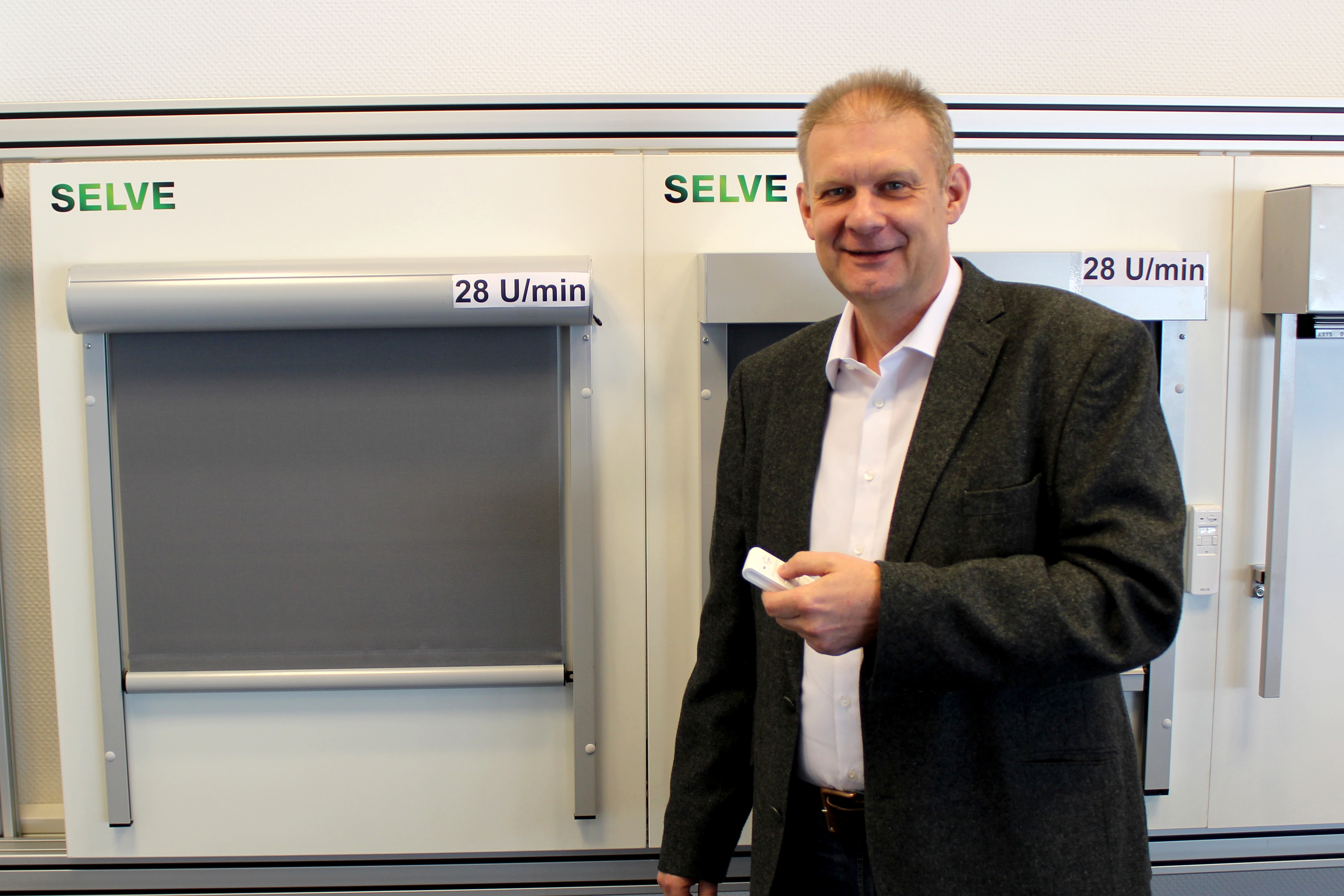 Generell kommen die Motoren mit 28 U/Min. bei allen textilen Behängen zum Einsatz, also immer dort, wo bei kleinen Tuchwellen keine großen Wickeldurchmesser des Behangs entstehen. Längere Laufzeiten werden durch die schnellen SELVE-Antriebe vermieden: sei es bei Wohngebäuden, die dem architektonischen Trend folgend über raumhohe Fenster und metergroße Behänge verfügen – oder sei es bei größeren Büro- oder Verwaltungsobjekten, bei denen über zentrale Steuerungen eine schnelle Zustandsänderung von beispielsweise 100 Antrieben oder mehr gewünscht wird. „Zudem ist es bei vielen Zip-Anlagen wichtig, dass die Motoren zügig eingefahren werden“, berichtet Dirk Wrobel, „dies können wir mit unseren 28 Umdrehungen pro Minute mit einer sicher handbaren Geschwindigkeit realisieren.“