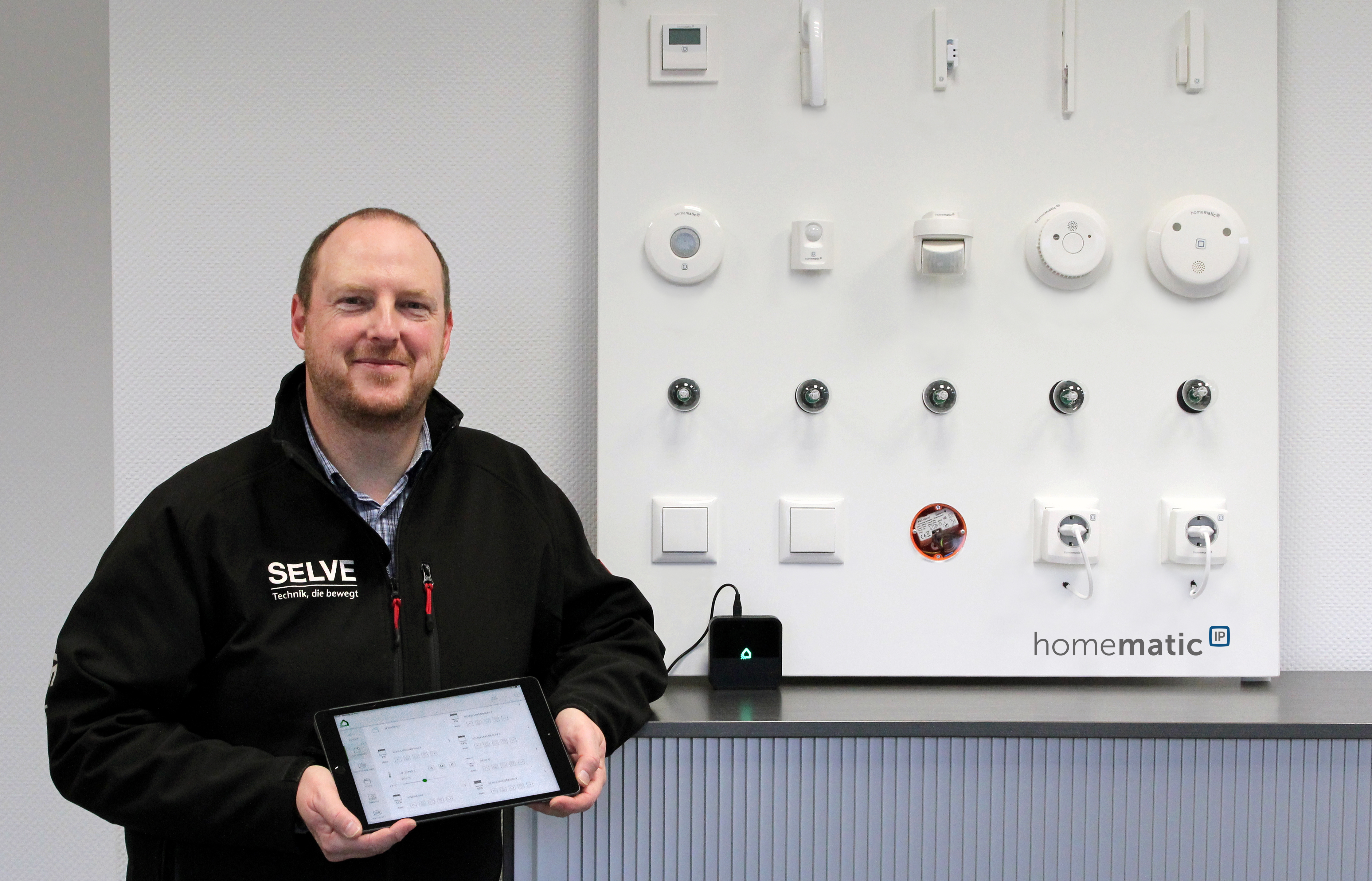 „Zu den Highlights von SELVE Home gehört ganz klar, dass wir hier insgesamt drei Funksysteme miteinander kombinieren können: Neben dem Betrieb als reine commeo-Anlage können ebenfalls sowohl unidirektionale iveo-, als auch commeo-Antriebe gemeinsam gesteuert und zusätzlich noch mit weiteren Elektrogeräten über verschiedenste Produkte aus dem Bereich Homematic IP vernetzt werden“, hebt SELVE-Produktmanager Stefan Backenecker hervor: „Das ist ein ausgesprochen hoher Mehrwert für unsere Kunden, denn damit lassen sich ganz einfach Heizungsaktoren, Schaltsteckdosen, Aktoren für Schalter und auch Unterputzmontage oder eine Alarmsirene mit nur einer App steuern. Darüber hinaus können beispielsweise Fensterkontakte, Temperatursensoren, Präsenz- oder Rauchmelder einen sogenannten Task auslösen – auch der Status kann jederzeit abgefragt werden.“