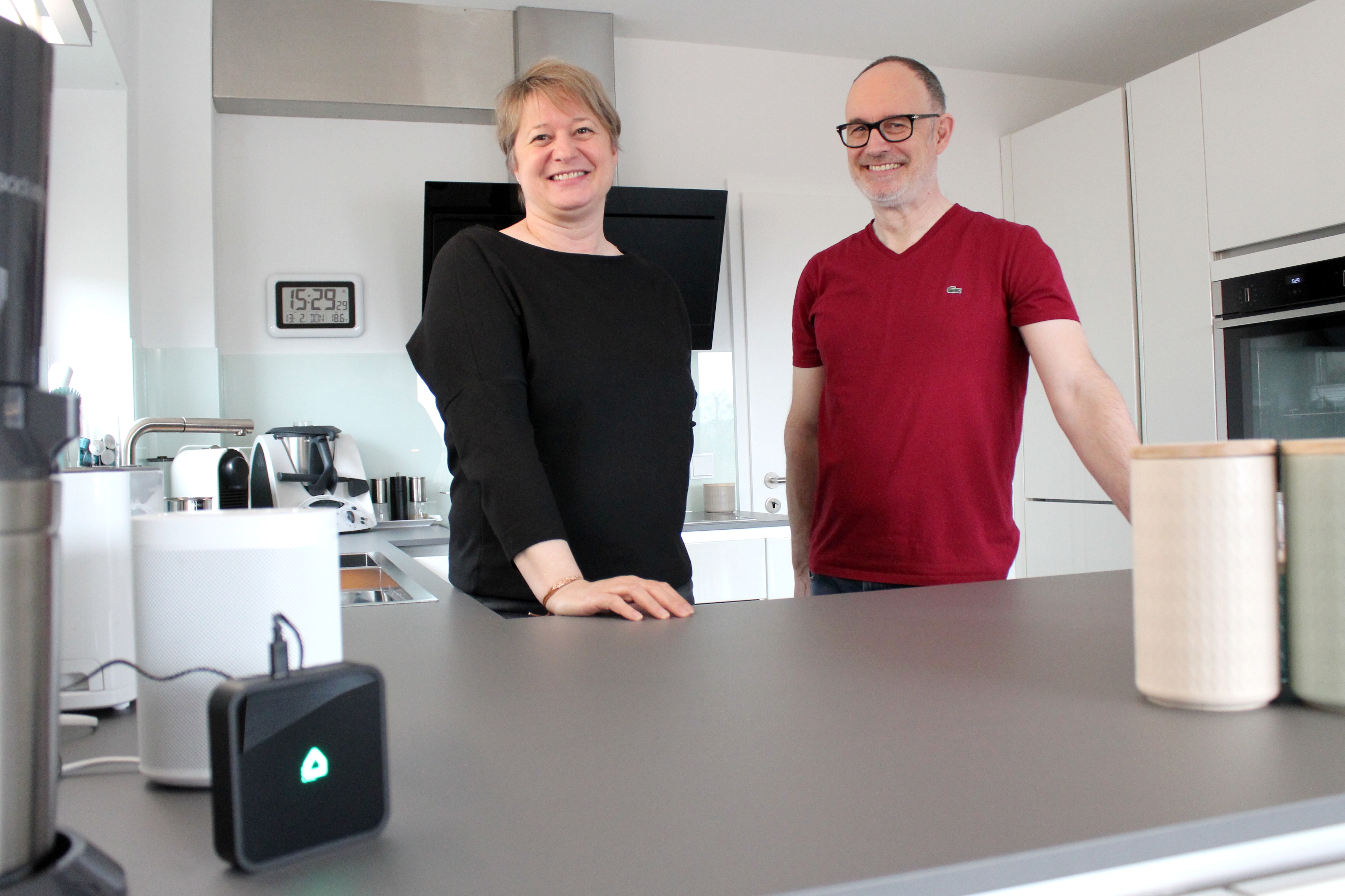 152 Quadratmeter Wohnfläche zählt das Einfamilienhaus in Lüdenscheid, das 2019 von Grund auf modernisiert wurde. Nina und Michael Krüger haben das 33 Jahre alte Wohnhaus im letzten Sommer gekauft und zeitgemäß umgestaltet – Wände, Böden, Elektrik und vieles mehr erneuern lassen. Eine offene Bauweise prägt das mehrgeschossige Haus der beiden Bewohner, die sich auch selbst offen für hochmoderne Steuerungslösungen zeigen. Bei der Renovierung haben sie sich bewusst gegen bedrahtete Rollladenantriebe entscheiden: „Funk ist die Zukunft, ich habe vollstes Vertrauen in die Technik“, so Michael Krüger.
