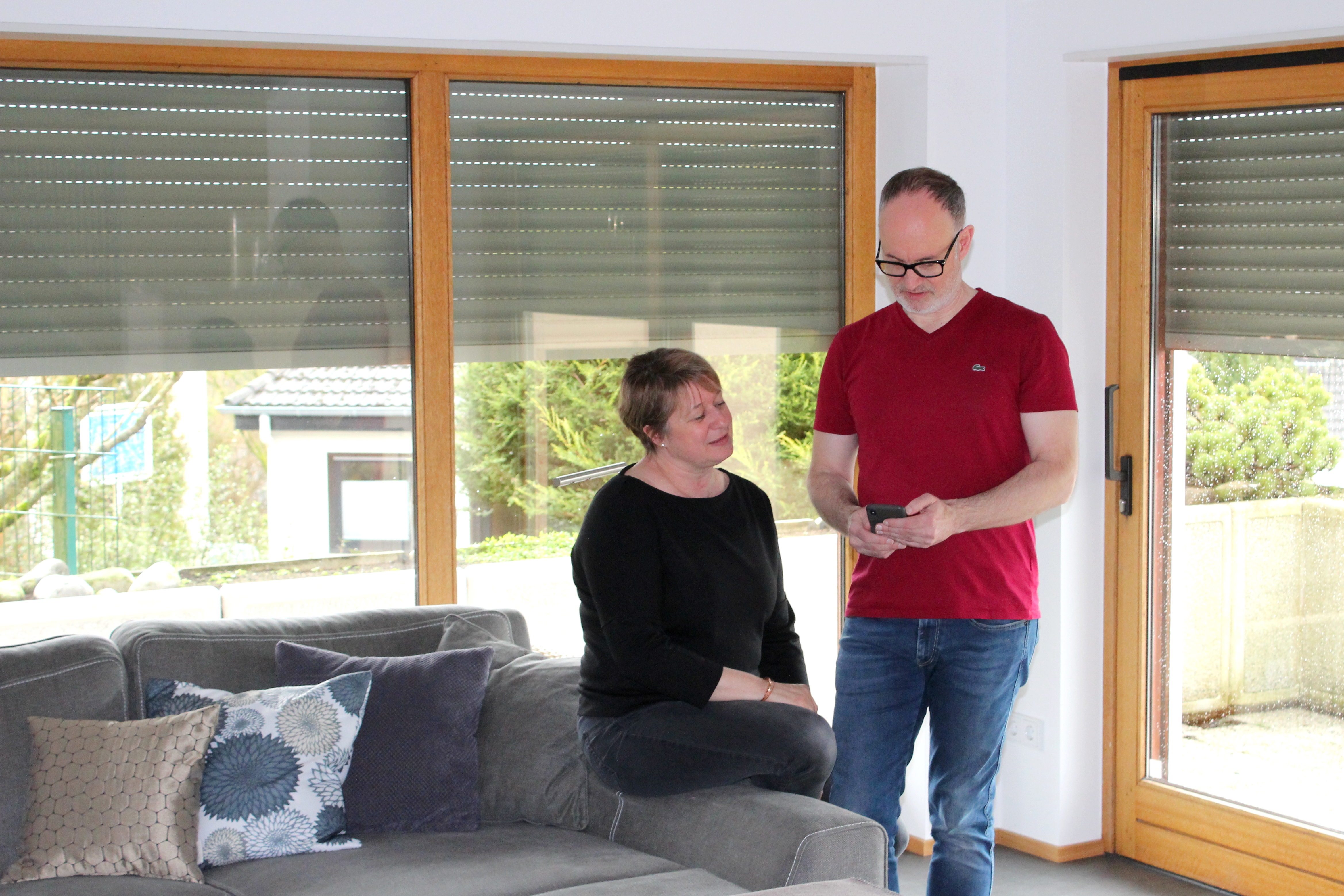 Nicht nur beim Fahren der Behänge funkt es seither im Lüdenscheider Eigenheim. Von den Hausbesitzern erhielten zur Motorisierung der Rollläden insgesamt 14 SE Pro-RC Antriebe den Zuschlag. Neben der lokalen Verbundenheit zum Lüdenscheider Unternehmen war für sie ebenso die „Bekanntheit der Marke SELVE als etablierter Anbieter von Qualitätsprodukten“ entscheidend. Und so wurden im Sommer vergangenen Jahres zunächst die Funkantriebe sowie 14 commeo-Wandsender zur lokalen Bedienung der Rollläden von einem Fachhandwerker installiert. Das ging alles „extrem flott“ – und bildete erst den Auftakt. Als weitere Ausbaustufe war von den Besitzern eine intelligente Haussteuerung von SELVE vorgesehen. Denn es war von Anfang an klar, dass ihr Haus zu einem „Connected Home“ werden sollte. Zu smarten Lösungen hat Michael Krüger schon allein von Berufswegen eine hohe Affinität, der Wirtschaftsingenieur ist in der SmartHome-Branche für ein amerikanisches Unternehmen tätig, das unter anderem intelligente Heizungssteuerungen anbietet.