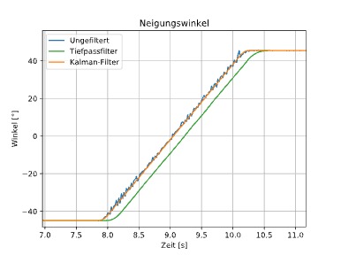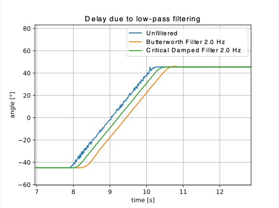 Vergleich der Verzögerung von Tiefpass- und Kalman-Filter