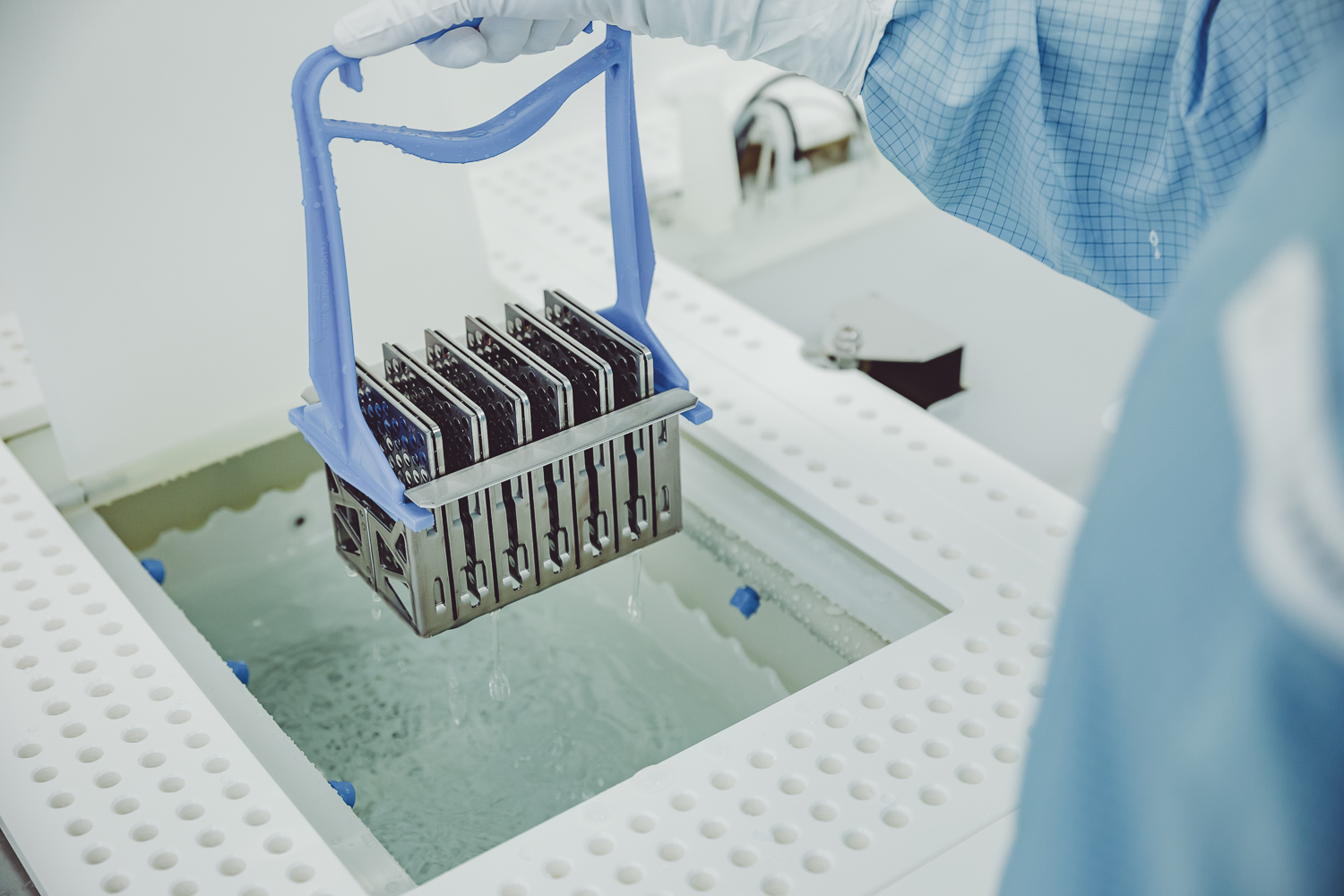 Nasschemischer Reinigungsprozess von Messzellen-Batches