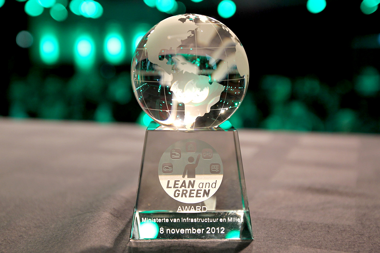(v.l.) Rui Macedo, Geschäftsführer der Sievert Handel Transporte GmbH und Henk Batterink, Geschäftsführer der N.T.M. Transportgroep B.V. mit dem Lean and Green Award.