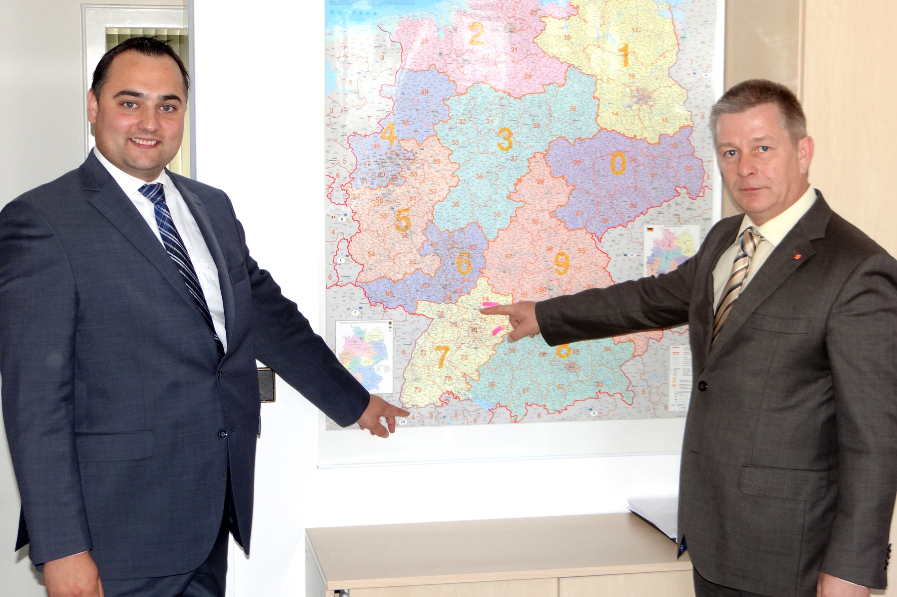 Kundenorientiert: Ulrich von Hahn, Geschäftsführer der sht, und Carsten Müller, Niederlassungsleiter der sht in Leipzig, erweitern die Kapazitäten für Lagerlogistik.