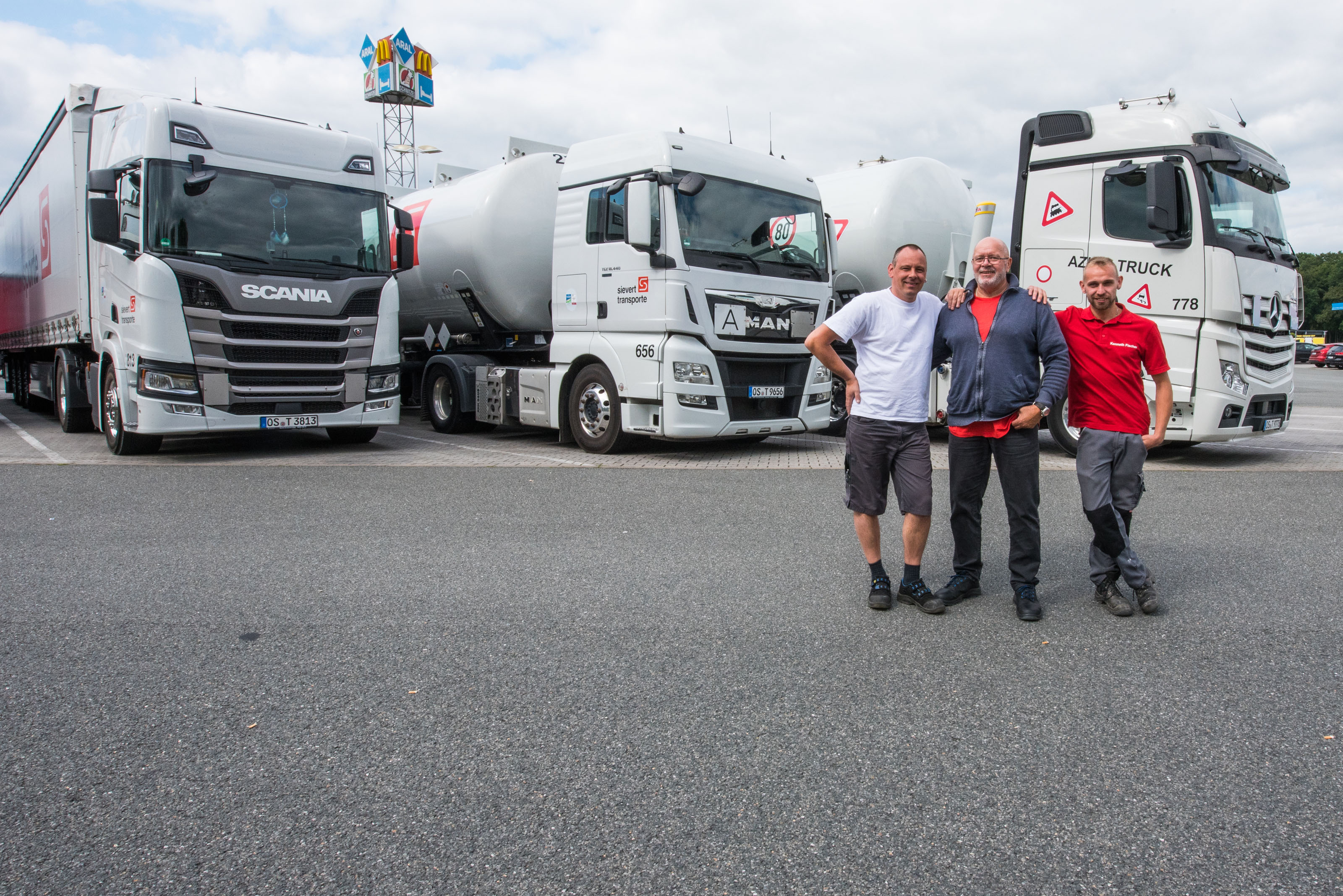 Die Kraftfahrer (v.l.) Torsten Sonnack, Willii Freese und Kenneth Fischer sind die Protagonisten des Films der sht. (Foto: sht)