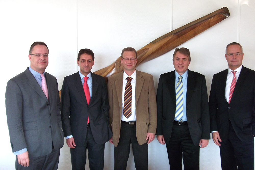 Von links: Stefan Egert (Vorstandsvorsitzender der Sievert AG), Rui Macedo GF der sht), Jens Bielert (Speditionsleiter der sbt), Reinhold Mergenthal (GF Benthack), Christoph Bauschen (GF Benthack) (Fotos: Sievert)