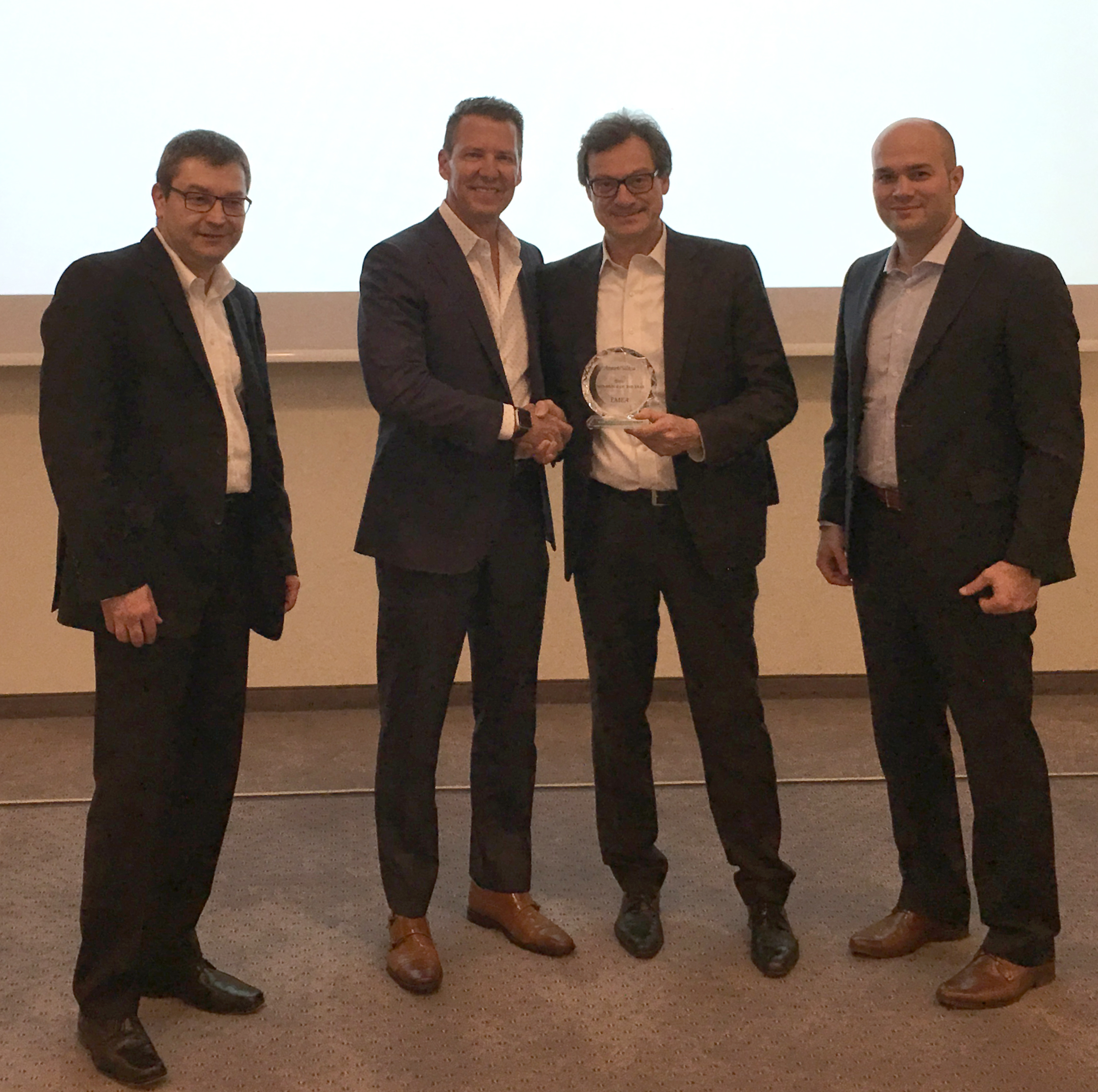 v.l.n.r.: Shinichi Iwamoto, SVP - Global Sales Management, Renesas Electronics, Japan, LaDawn Berko-Boateng, Silica, Supplier Business Manager-Europe, Robert Green, CEO, Renesas Electronics Europe, Achim Mescher, Director Sales Europe, Renesas Electronics Europe, Francesco Rotta, Sales Manager Distribution, Renesas Electronics Europe