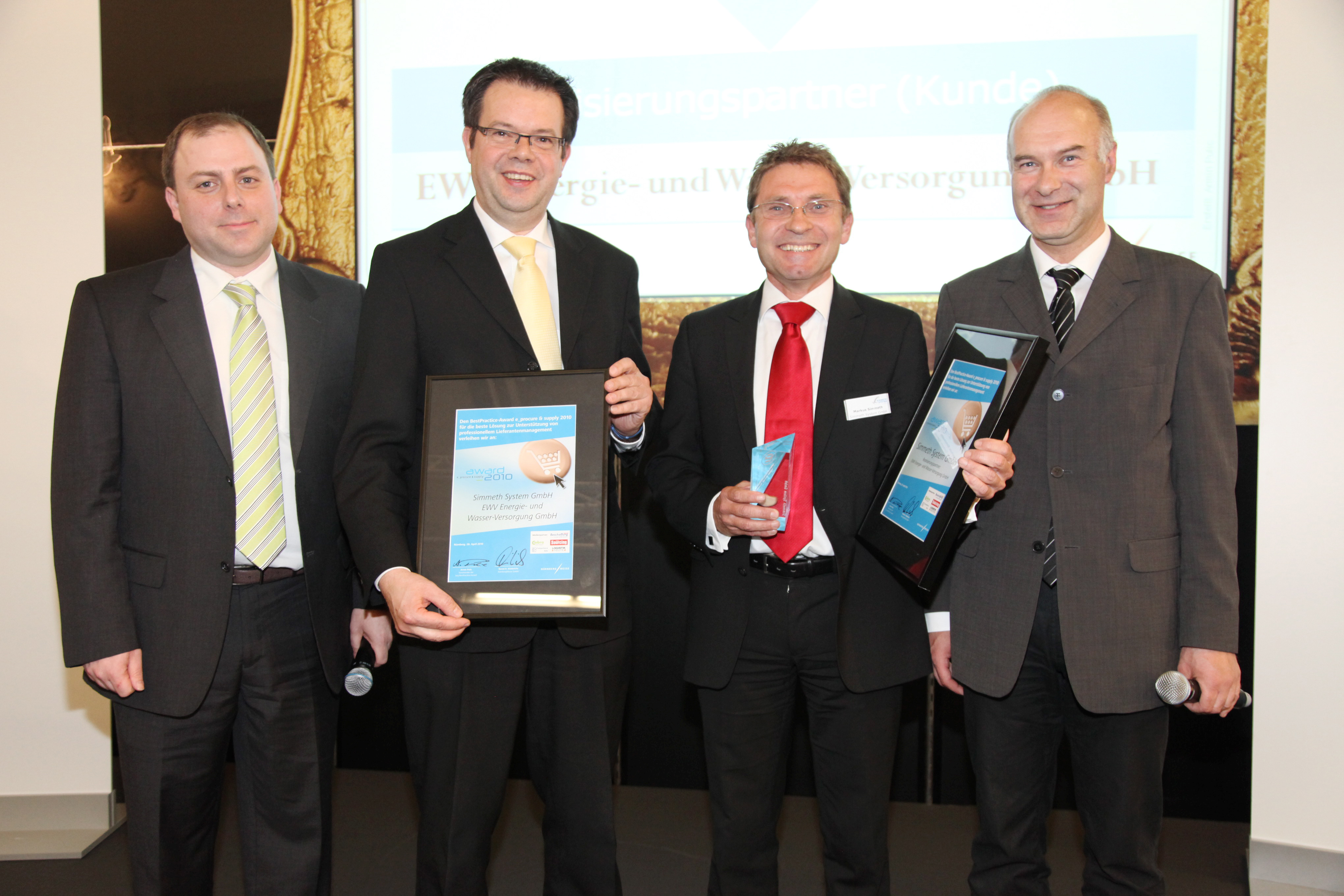(pressebox) (Burghausen, 10.05.2010) Das Burghauser Consulting- und Softwareunternehmen Simmeth System GmbH hat auf der Nürnberger Fachmesse „e_procure & supply“ den in der deutsch-sprachigen IT-, Einkaufs und Logistikbranche renommierten „BestPractice-Award 2010“ in Bronze erhalten. Die Jury zeichnete die Kennzahlen- und Bewertungsspezialisten aus der Salzachstadt für das erfolgreiche Supplier-Management des Rheinländischen Energie- und Trinkwasser-Versorgungsunter-nehmens EWV Stolberg aus: „Die Krönung eines erfolgreich verlaufenen Jahres 2009 und der Beweis, dass wir auch 2010 mit unserer Produktstrategie auf dem richtigen Weg sind“, freut sich Markus Simmeth, geschäftsführender Gesellschafter des Unternehmens.