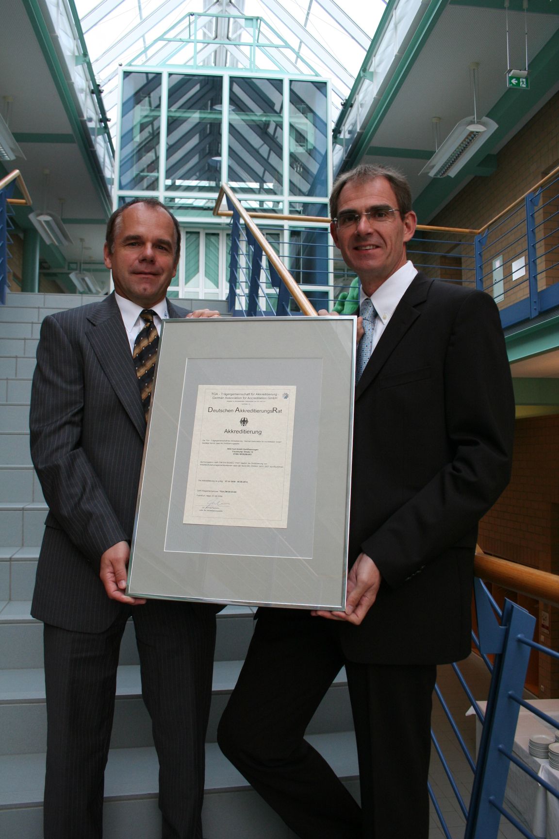 (pressebox) (Würzburg, 14.10.2009) Das SKZ (Süddeutsches Kunststoff-Zentrum) hat sein Spektrum im Bereich der Zertifizierung von Managementsystemen erweitert. Stolz präsentieren der Institutsleiter Dr. Bastian und Dipl.-Ing. Robert Schmitt die von der Trägergemeinschaft für Akkreditierung (TGA) erhaltene Akkreditierungsurkunde für die 'Zertifizierung von Arbeitssicherheitsmangementsystemen nach OHSAS 18001'. Mit dieser neuen Akkreditierung kann das SKZ Unternehmen nicht nur nach Qualitätskriterien (ISO 9001) und/oder Umweltkriterien (ISO 14001) auditieren und zertifizieren, sondern auch nach Arbeitssicherheitsaspekten (OHSAS 18001)