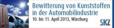 Bereits zum 9. Mal veranstaltet das Kunststoff-Zentrum SKZ die Fachtagung "Bewitterung von Kunststoffteilen in der Automobilindustrie". Unter der fachkundigen Leitung von Dipl.-Phys. Andreas Riedl von der Atlas Material Testing Technology GmbH, stellen Experten am 10. und 11. April 2013 in Würzburg den Stand der Technik dar, diskutieren verschiedene Polymerwerkstoffe und deren Stabilisierung und geben praxiserprobte Anwendungsbeispiele.