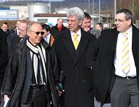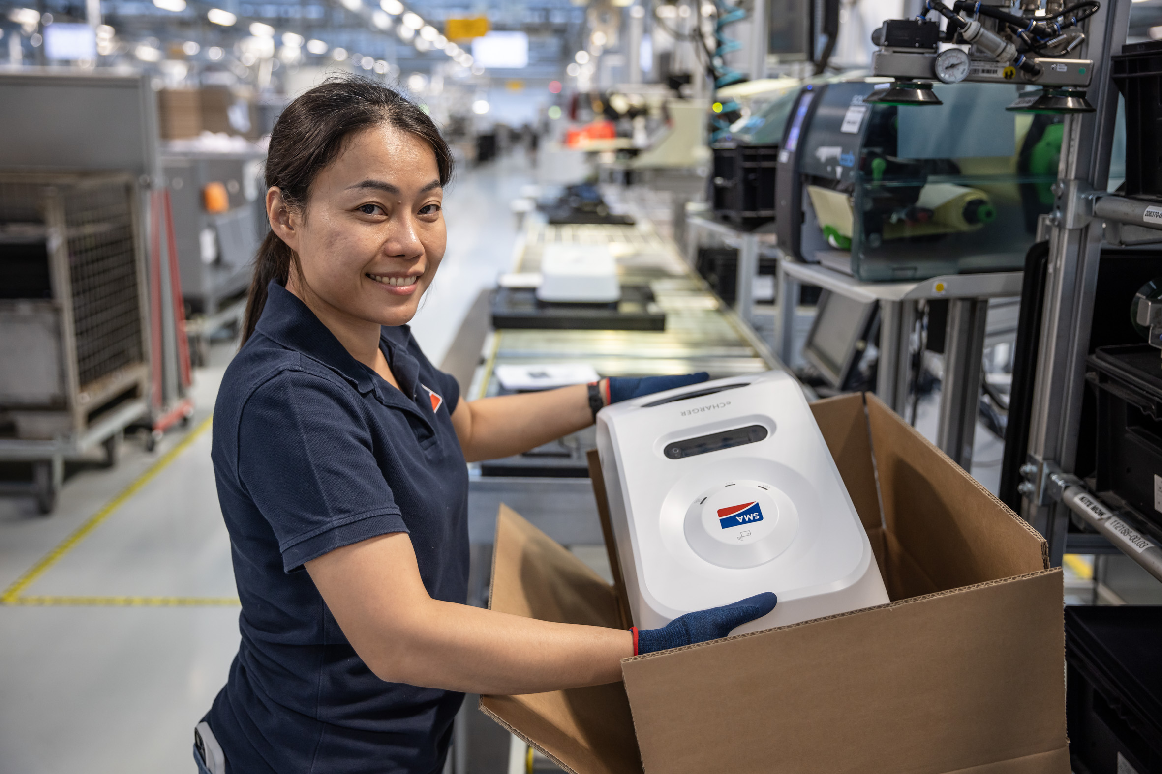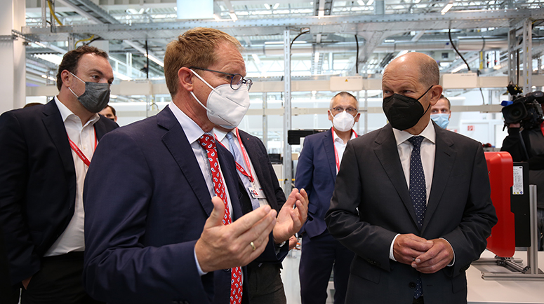 Spatenstich für die SMA GIGAWATT FACTORY: Andreas Siebert, Landrat des Landkreises Kassel (von links), Timon Gremmels, Mitglied des Bundestags, Mark Weinmeister, Regierungspräsident des Regierungsbezirks Kassel, Barbara Gregor, SMA Finanzvorständin, Jürgen Reinert, SMA Vorstandssprecher, Fred-Martin Dillenberger, Leiter Corporate Real Estate Management SMA, Marcel Brückmann, Bürgermeister Gemeinde Niestetal.