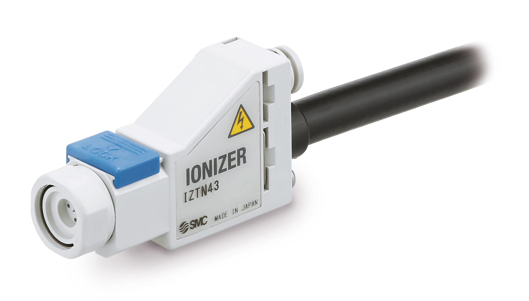 Wenn etwa Werkstücke vor Verunreinigungen wie Staub befreit oder Defekte an elektrischen Bauteilen verhindert werden sollen, kommen branchenweit Ionisierer zum Einsatz, die die statische Ladung auf Materialoberflächen neutralisieren. SMC, der Spezialist für pneumatische und elektrische Automatisierung, hat für derartige Prozesse den Düsen-Ionisierer der Serie IZT43 entwickelt, der umfangreiche Vorteile bietet – u.a. ein kompaktes Design, einfache und gleichzeitig mehrfache Funktionsüberwachung und -einstellung sowie die Anwendung ohne Luftzufuhr.