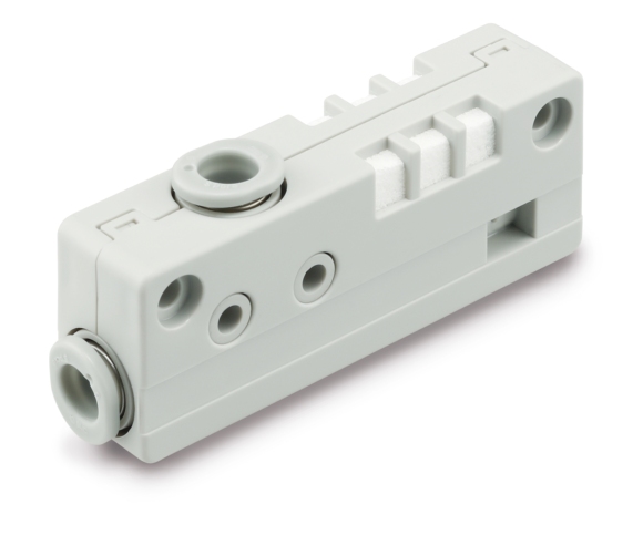 Der Vakuumerzeuger ZH-A als Kompaktversion lässt sich dank dreier Montageoptionen leicht an unterschiedlichen Maschinendesigns installieren: Prozessingenieure können wahlweise zwischen der Direktmontage, der Montage mit L-Befestigungselement oder der DIN-Schienenmontage wählen. Das gleiche gilt für den Anschluss entweder als Steckverbindung oder Verschraubung (G-/Rc-/NPT-Gewinde) oder als Kombination zwischen den beiden Anschlussoptionen.