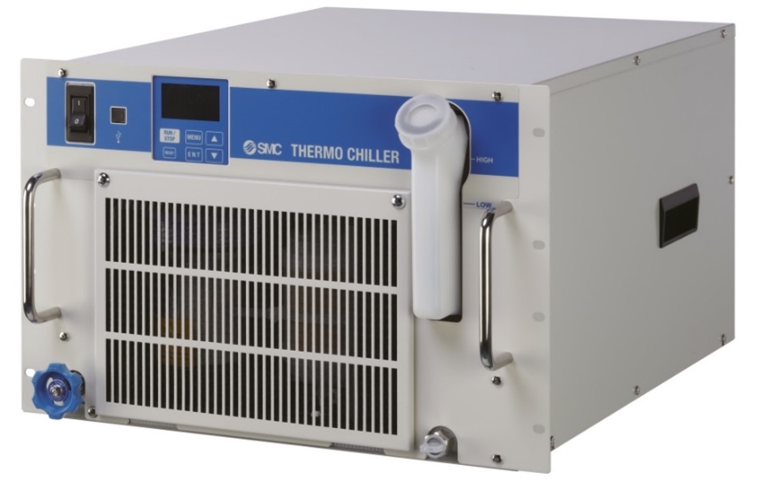 Bei Hochleistungslasern zum Schweißen oder Schneiden müssen Laseroszillator und optisches System getrennt voneinander temperiert werden. Hier kommen zwei Kühl- und Temperiergeräte zum Einsatz – oder ein duales System wie die Serie HRLE von SMC, die deutlich Platz einspart und weitere umfangreiche Vorteile mit sich bringt. Sie erlaubt die individuelle Steuerung von zwei Medienkreisläufen in nur einem Gerät, was die Anschaffungskosten und den Platzbedarf reduziert. Dabei überzeugt die Serie mit einer Kühlleistung von 8 kW, einer Heizleistung von 2 kW (jeweils Kanal 1 + Kanal 2) und einer Temperaturstabilität in Höhe von ±0,1 ºC (Kanal 1) bzw. ±0,5 ºC (Kanal 2). Durch die integrierte Dreifachinverter-Steuerung für Kompressor, Lüfter und Pumpen mithilfe eines Frequenzumrichters lässt sich die Abwärme des Kompressors zum Heizen des zirkulierenden Umlaufmediums nutzen. Dadurch ist der Stromverbrauch im Vergleich zu Systemen mit Heizelement um 17 % geringer.