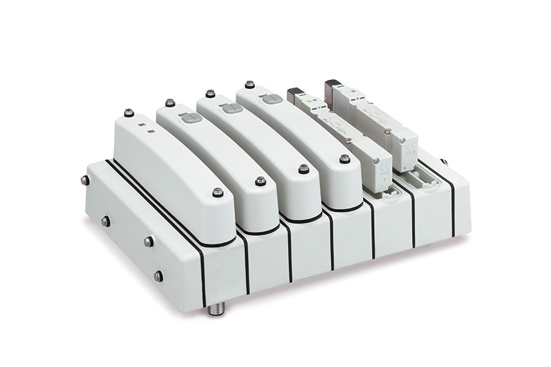 Neben den genannten Vorzügen bei der Konstruktion ergeben sich weitere Vorteile durch das kompakte Design mit Abmessungen von 81 x 166 x 233 mm (H/B/T) bei 5 Stationen – die Ventilbreite des Einzelventils beträgt lediglich 15 mm. Die Wahlmöglichkeit zwischen Mehrfachanschlussplatte oder Einzelventilen (in der Ausführung mit Montagebolzen oder mit Steckverbindung) erlaubt neben einer erhöhten Variantenvielfalt, dass Einzelventile statt in Schaltschränken möglichst nahe an einer Anwendung installiert werden können. Im Falle von unterschiedlichen Drücken kann außerdem zusätzlich eine verblockbare Einzelanschlussplatte als Versorgungs- und Entlüftungsmodul verwendet werden. Zusammengenommen sind nicht nur kleine und damit platzsparende Maschinendesigns möglich, was kurze Schlauchleitungen und eine prozessnahe Installation beinhaltet. Zugleich verringert ihre Konstruktion die Wartungszeit und damit die Kosten.