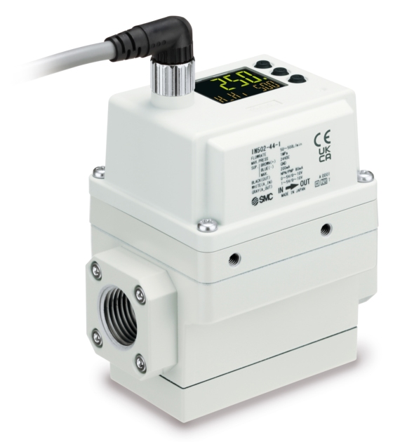 (pressebox) (Egelsbach, 16.01.2024) Ein genauer Durchfluss bei Anwendungen mit trockener Luft oder Stickstoff ist entscheidend für Prozesssicherheit und Effizienz. Dafür kommen oft Kombinationen aus Durchflusssensor, elektropneumatischem Druckregler und Steuerung zum Einsatz, bei denen allerdings die Verwendung eines Durchfluss-Sollwerts nicht möglich ist. Mit dem neuen Durchflussregler der Serie IN502-44/45 hebt SMC diese bisherigen Grenzen auf. Anwender profitieren so von einem deutlich verringerten Platzbedarf durch Verwendung einer einzigen Lösung. Zusätzlich wird der Anschluss vereinfacht und die Kommunikation sowie die Steuerung verbessert. Die Auswahl von drei Schmiermitteln und der hohe Durchflussbereich sorgen dafür, dass sich ein umfassendes Anwendungsfeld in verschiedenen Branchen abdecken lässt.