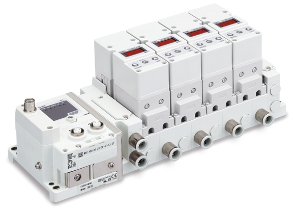 (pressebox) (Egelsbach, 26.03.2024) Von der Zugkraftregelung in Spulenwickelmaschinen über die Spannungskontrolle in Druck-, Folien- und Kartonverarbeitungsmaschinen bis hin zur Druckfüllung in Leckageprüfgeräten: Soll eine stufenlose Steuerung des Luftdrucks in Abhängigkeit von elektrischen Signalen erfolgen, sind elektropneumatische Regler die erste Wahl. Statt wie üblich mehrere Regler einzeln einzurichten und damit den Platzbedarf sowie den Verdrahtungsaufwand zu erhöhen, hat SMC die Serie IITV23 entwickelt: Bis zu vier elektropneumatische Regler finden gemeinsam mit einem Feldbusmodul Platz auf einer Mehrfachanschlussplatte – ohne externe Verdrahtung. Anwender profitieren so unter anderem von der Reduktion beim Platzbedarf und beim Aufwand für Einrichtung und Wartung, umfangreicher und zugleich einfacher Steuerung und hohen Leistungskennziffern.