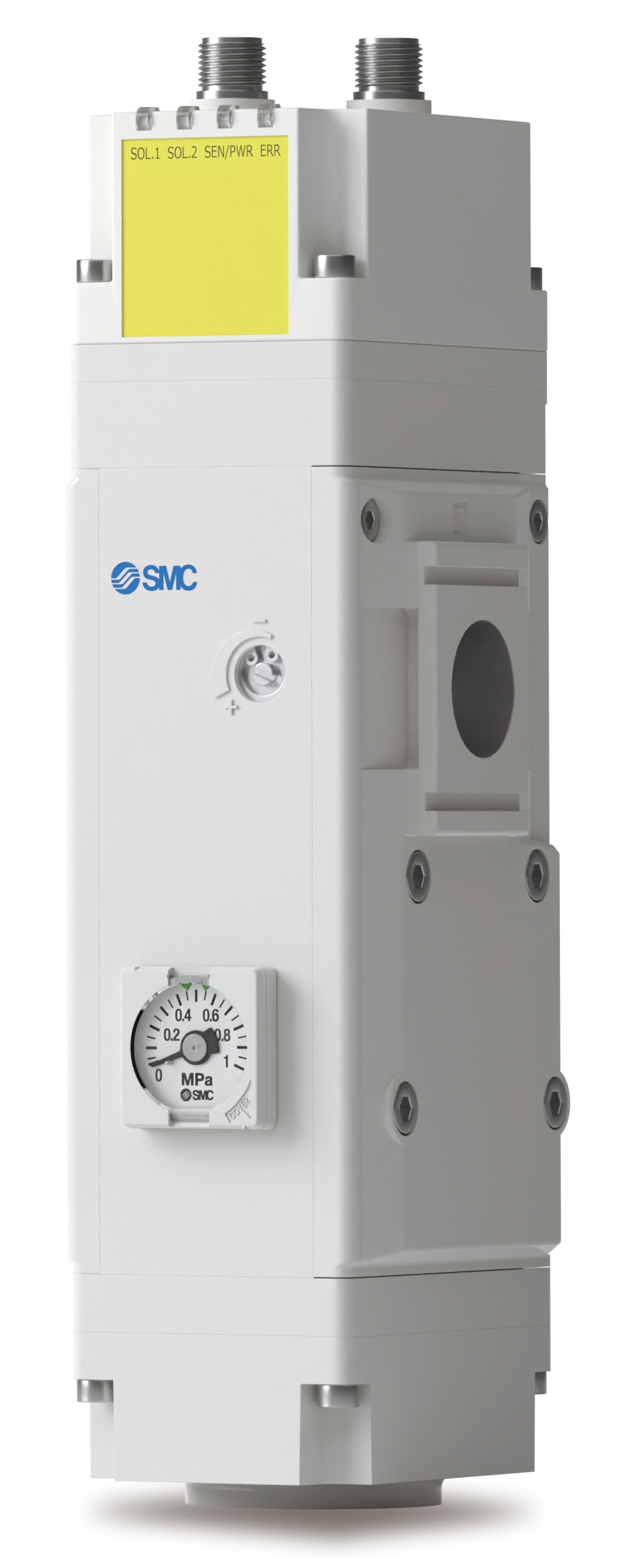 Bei jedweden Anlagen ist die funktionale Sicherheit das A und O – insbesondere, wenn es um den Schutz von Menschen geht. Kommt es zu einem Not-Aus, ist sicherzustellen, dass etwa pneumatische Anlagen im Automobilbau, der Robotik oder der Verpackungs- und Nahrungsmittelindustrie schnellstmöglich entlüftet werden. Mit der neuen Serie VPX400 hat SMC dazu eine multifunktionale Einzellösung entwickelt. Das Sicherheitsentlüftungsventil sorgt für eine auf dem Markt einzigartig schnelle Entlüftung, bei der zwei interne Ventile überwacht werden, um damit eine doppelte Redundanz sicherzustellen. Das bereits zertifizierte Produkt erfüllt so die höchsten Performanceanforderungen der ISO-Norm 13849-1 und kann parallel zur Steuerung der Versorgung mit Druckluft eingesetzt werden, um auch eine Softstartfunktion zu ermöglichen. Zudem ist es mit LEDs zur sofortigen Statusüberwachung ausgestattet, mit modularen Wartungseinheiten von SMC kombinierbar und überzeugt durch die Schutzart IP65 auch in Sachen Widerstandsfähigkeit.