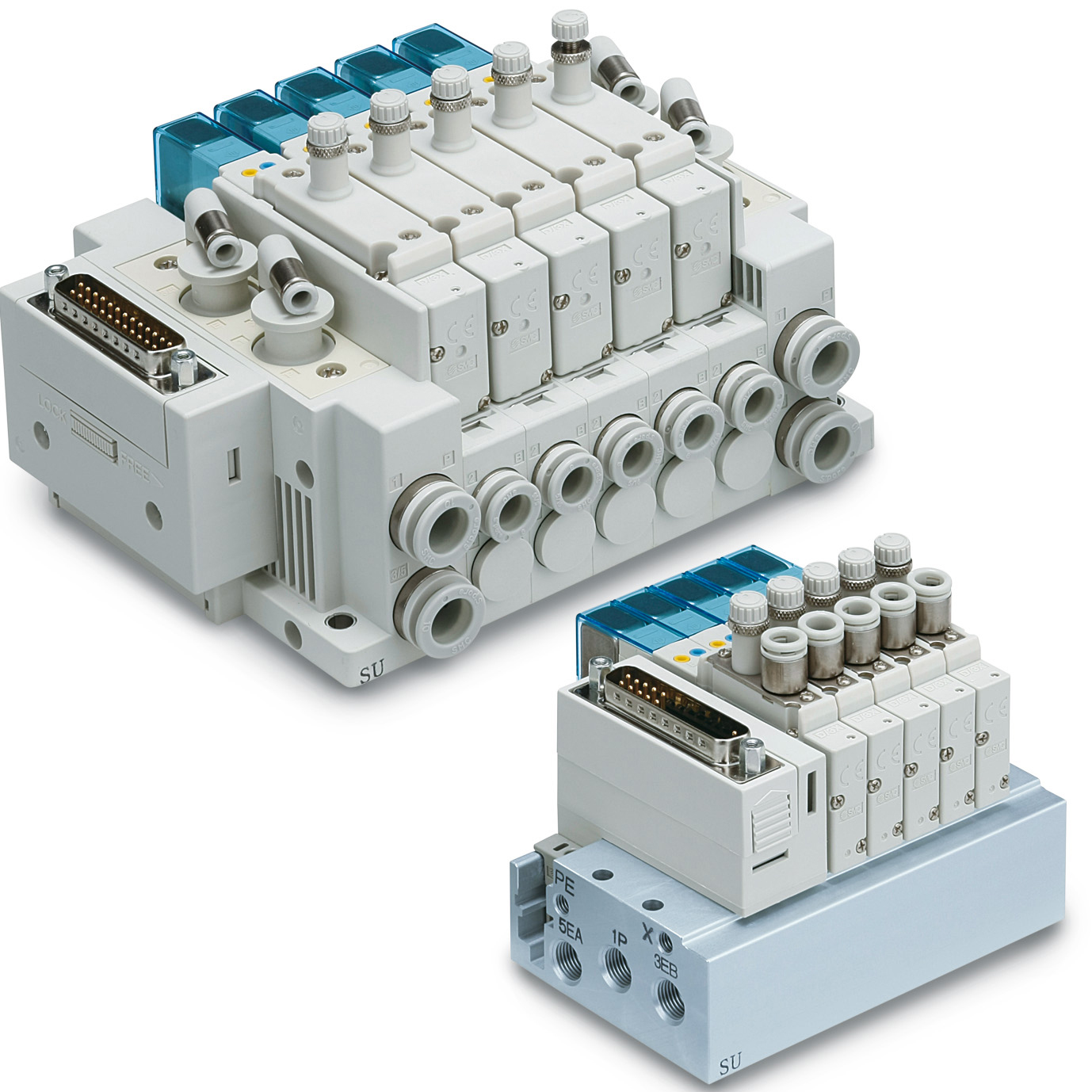 Die neuen 2 x 2/2-Wege Vakuum-Blasventile verfügen über einen gemeinsamen Arbeitsausgang und sind in einem Gehäuse integriert. Der Durchfluss von Blasluft wird über eine manuell einstellbare Drossel im Arbeitsbereich von 0 bis 0,6 bar geregelt. Vakuumseitig sind die SY3AxR/SY5AxR Ventile für einen Bereich von -100 bis +0,7 kPa ausgelegt. Bei der Montage genießen Anwender maximale Flexibilität, bei der je nach Ausführung die Montage auf einer Standard-Kunststoff- oder -Aluanschlussplatte seitlich, oben oder unten möglich ist.