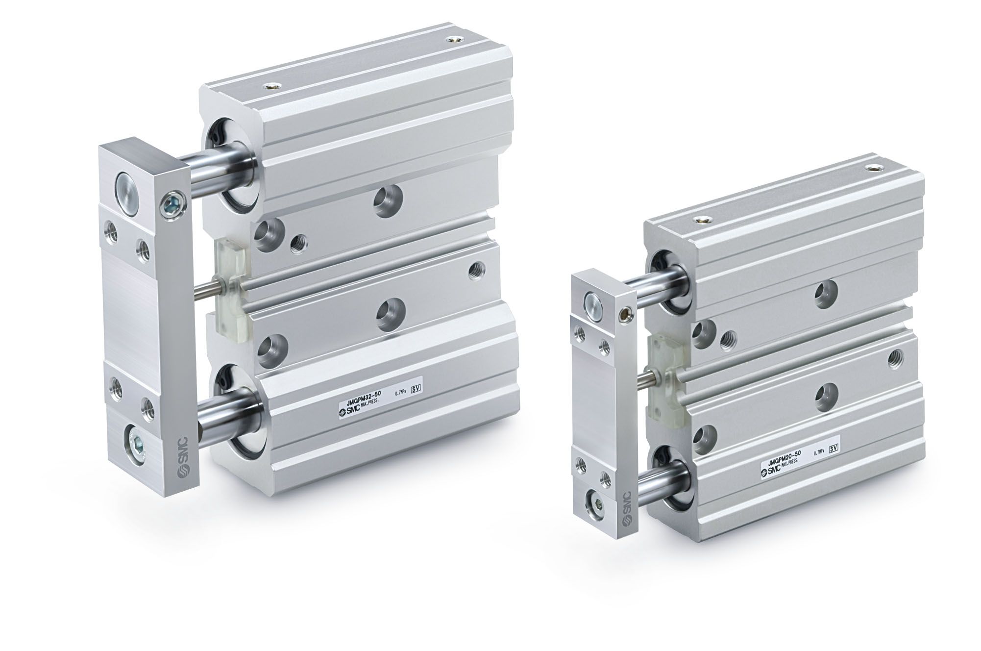 (pressebox) (Egelsbach, 07.09.2017) In modernen Maschinen und Anlagen ist immer weniger Platz. Gleichzeitig erschweren große, massive Anbauteile die Montage und das Handling. Mit den neuen, kompakten Führungszylindern mit Doppelkolben der Serie JMGP wirkt SMC dieser Entwicklung entgegen: Fast 70% weniger Gewicht als die etablierten Kompaktzylinder der Serie MGP bringen die neuen Modelle auf die Waage. Gleichzeitig wurde in der Höhe und Länge jeweils zwischen 25 und 35 % eingespart. Die Kompaktzylinder der Serie JMGP werden mit Kolbendurchmesser von 12 – 100 mm angeboten und können Hübe bis 200 mm realisieren. Insgesamt drei verschiedene Montageoptionen und die Option, die Druckluft von vier Seiten aus anschließen zu können, sorgen für maximale Flexibilität in jeder Einbausituation. Ausgestattet mit einer Anschlagdämpfung sind die JMGP-Kompaktzylinder im Einsatz äußerst schonend, wenn sie Güter heben, schieben oder klemmen.