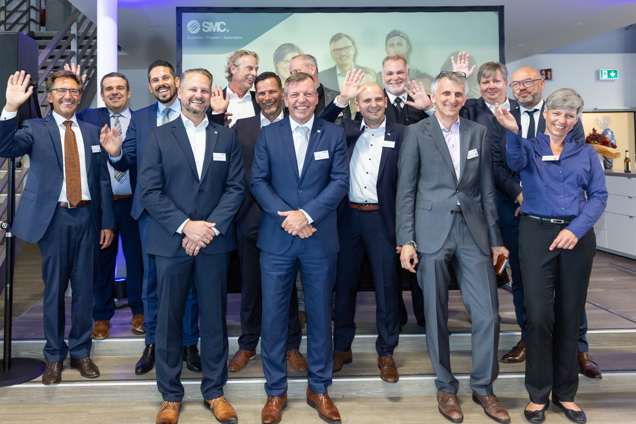 Die SMC Deutschland GmbH ist eine 100-prozentige Tochter der japanischen SMC Corporation. Die hat in den letzten beiden Jahren kräftig in den deutschen Standort investiert. Fast 30 neue Fertigungsmaschinen wurden angeschafft, darunter modernste 4- und 5-Achsmaschinen, CNC-Bearbeitungsdreh- und -Fräszentren sowie ein automatischer Werkstückspeicher, der mithilfe eines 2-achsigen Linearmoduls ein angeschlossenes 5-Achs-Bearbeitungszentrum vollautomatisch mit Werkstück-Rohlingen versorgt. Davon konnten sich die Besucher später bei einem Rundgang durch die Produktion mit eigenen Augen überzeugen.