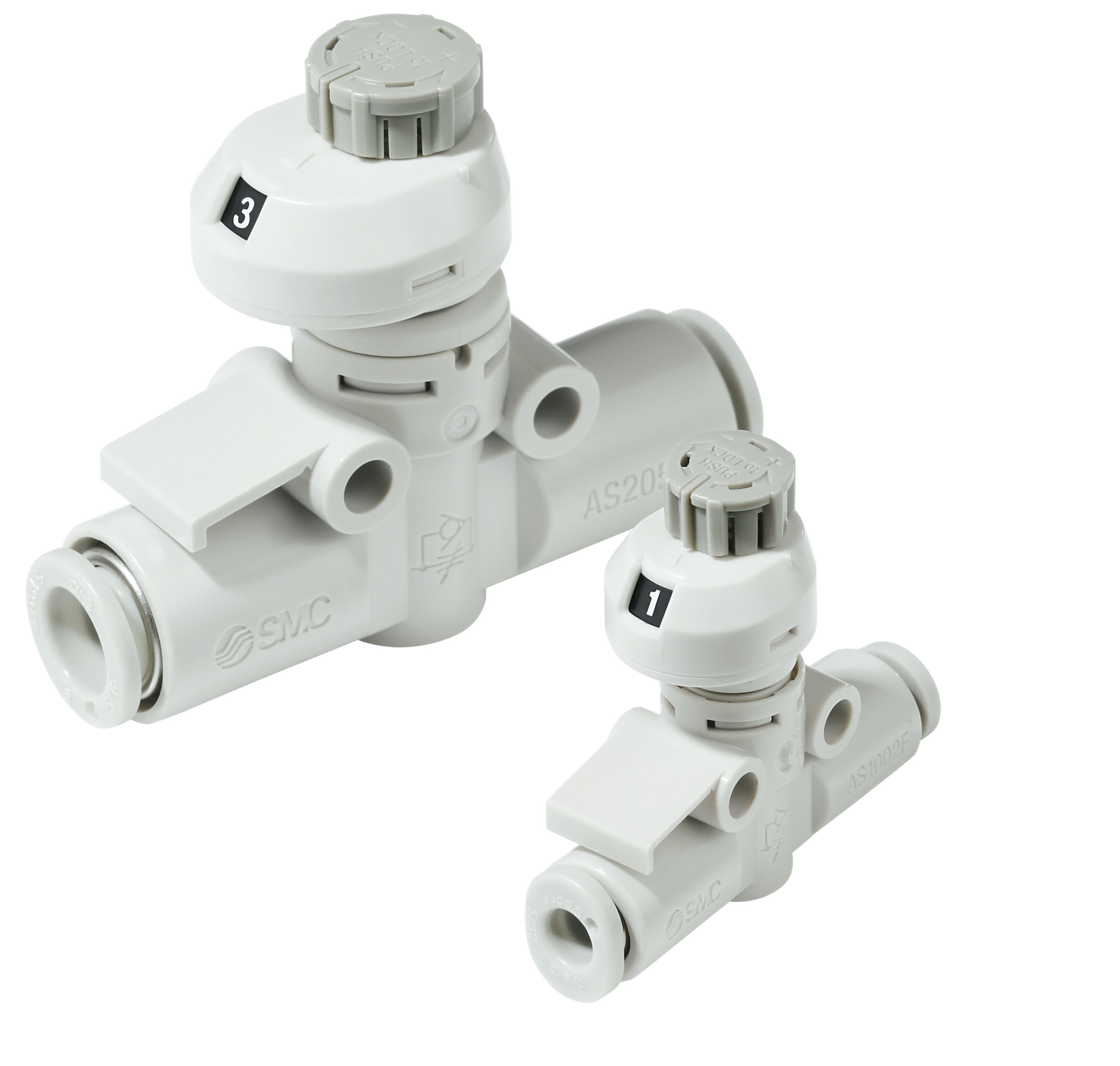 Insgesamt 5 Baugrößen umfasst die Serie AS-2FS. Mit jeweils 6 Anschlüssen im zöllischen (1/8", 5/32", 1/4", 5/16", 3/8" und 1/2") und metrischen System (3,2 mm, 4 mm, 6 mm, 8 mm, 10 mm 12 mm) stehen zahlreiche Modelle zur Verfügung. Der Anschluss von Schläuchen gelingt im Handumdrehen über praktische Steckverbindungen. Die Serie AS-2FS ist für alle gängigen Schlauchmaterialien wie Polyamid, Polyurethan oder Fluorpolymer geeignet.