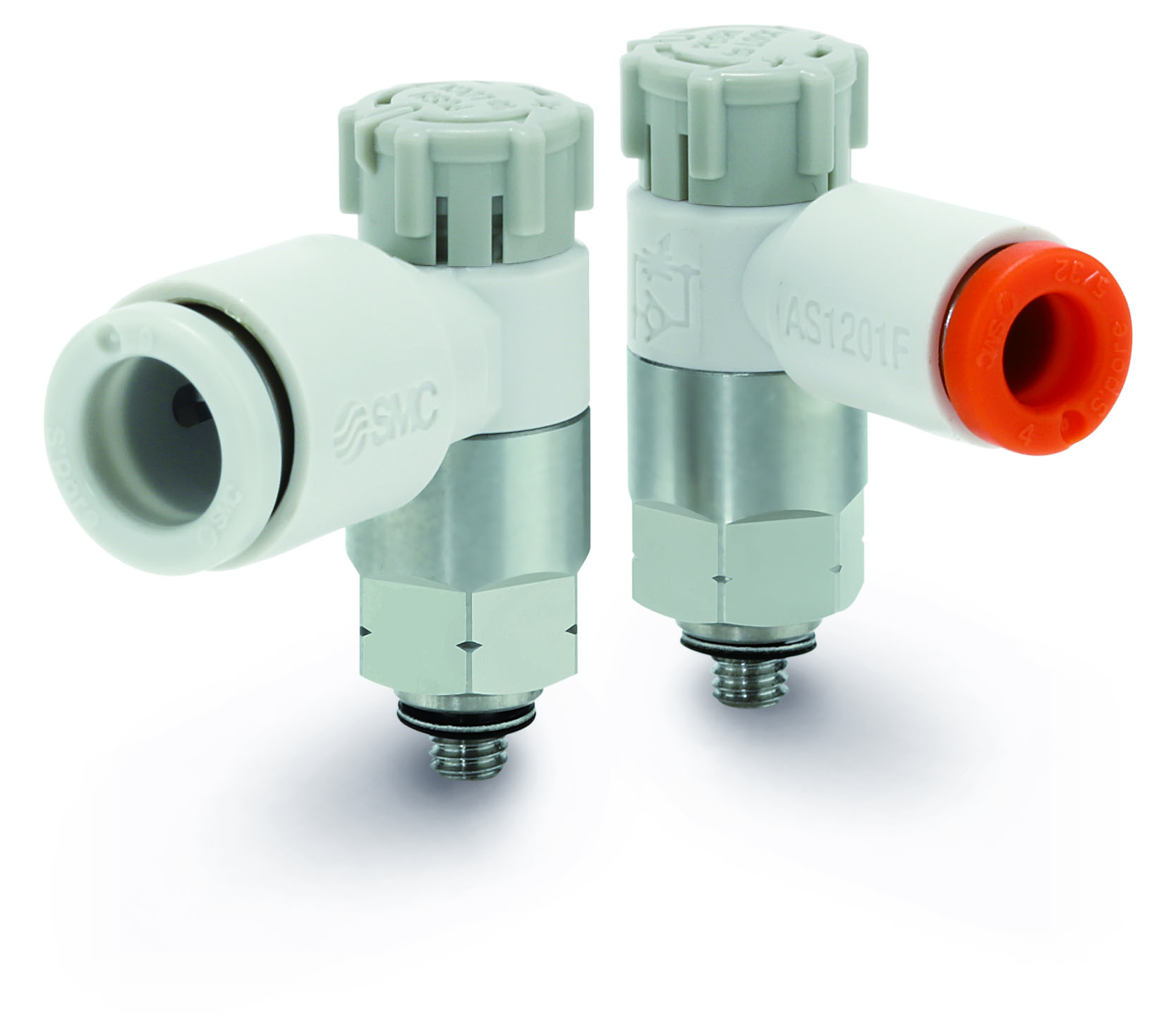 (pressebox) (Egelsbach, 04.12.2018) „Wer die Geschwindigkeit eines Zylinders mit einem M3-Gewindeanschluss steuern möchte, kann jetzt auch auf unsere Drosselrückschlagventile der AS-Serie zugreifen“, freut sich Tobias Hartherz, Product Management SMC Deutschland, über die neuste Ergänzung im Sortiment. Unter der Serie AS-X790 bietet SMC Drosselrückschlagventile mit Steckverbindung in Winkelausführung. Sie sind aufgrund ihrer ausgezeichneten Eigenschaften perfekt geeignet, die Geschwindigkeit von Kurzhub-Zylindern bei eingeschränkten Platz- oder Gewichtsverhältnissen zu steuern. Darüber hinaus sieht SMC ihr Einsatzgebiet generell in allen Anwendungen der Robotik, den Schub-, Hebe- und Klemmanwendungen sowie der Handhabung und dem Transport.
