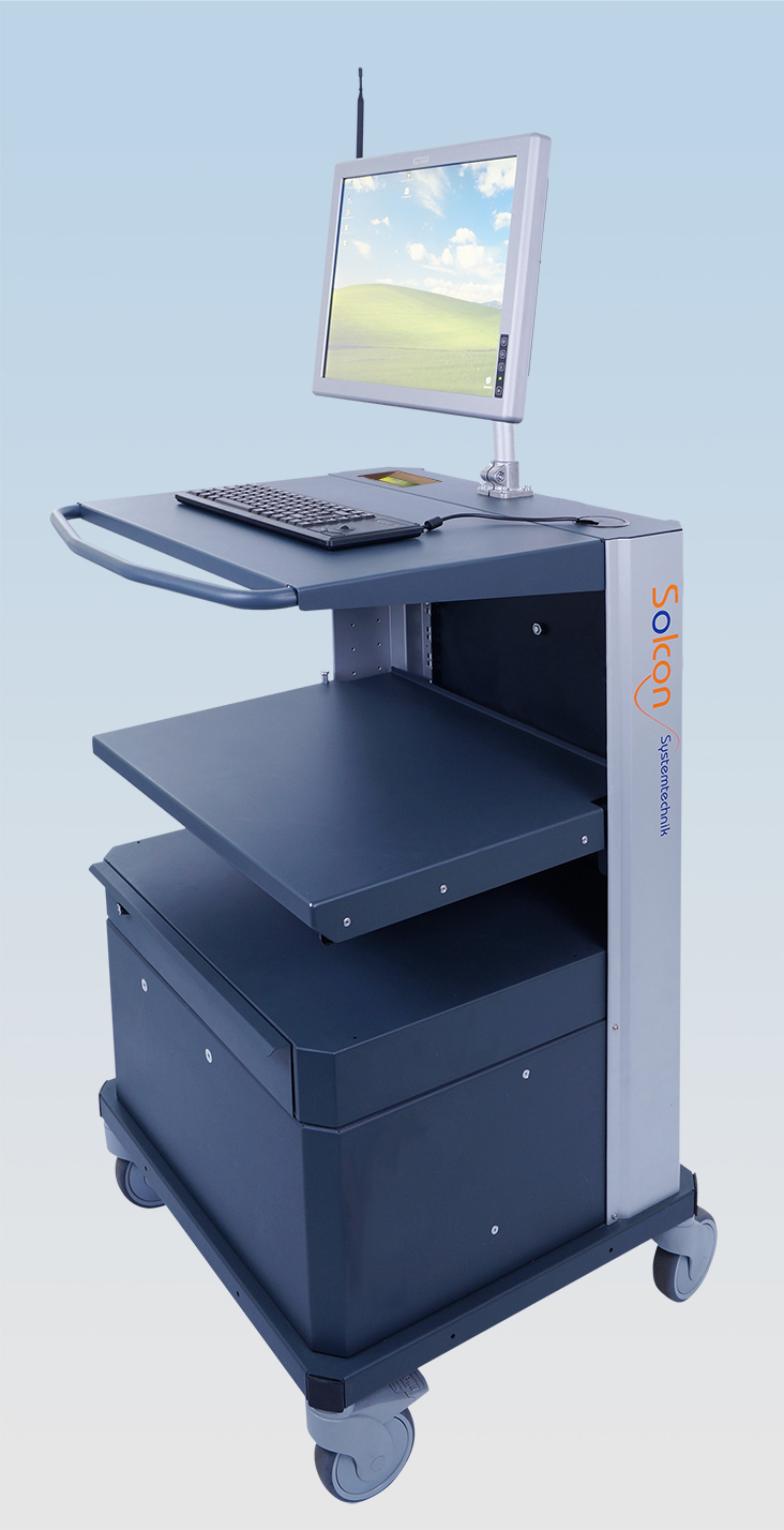 (pressebox) (Lübeck, 20.06.2013) Solcon hat sich als ein führender Hersteller von PC Wagen für das logistische und industrielle Umfeld einen Namen gemacht. Unterschiedliche Varianten und eine umfangreiche Palette an Zubehör machen den Wagen kundenspezifisch konfigurierbar. Ob Teleskopauszug, Becherhalter, oder Leselampe, auch auf ganz individuelle Wünsche geht Solcon ein. „Unser Ziel ist es, den Mobilwagen für seinen Nutzer zu einem mobilen Arbeitsplatz zu machen, an dem er sich mindestens genauso wohl fühlt, wie in einem eigenen Büro“, erklärt Geschäftsführer Dr. Reiner Wieck. Neuestes Feature ist eine digitale Akkuanzeige, die endlich Schluss macht mit bösen Überraschungen. Wer in der Vergangenheit häufig in unpassenden Momenten seine Arbeit unterbrechen musste, weil ohne Vorwarnung der Akku plötzlich leer war, der wird nun rechtzeitig durch optische und akustische Signale über den geringen Ladestand des Akkus informiert. Außerdem ist die Restkapazität stets in Prozent und Balken im beleuchteten LCD-Display abzulesen, so dass der Akkuwechsel oder das Wiederaufladen rechtzeitig und komfortabel zu einem geeigneten Zeitpunkt geschehen kann.
