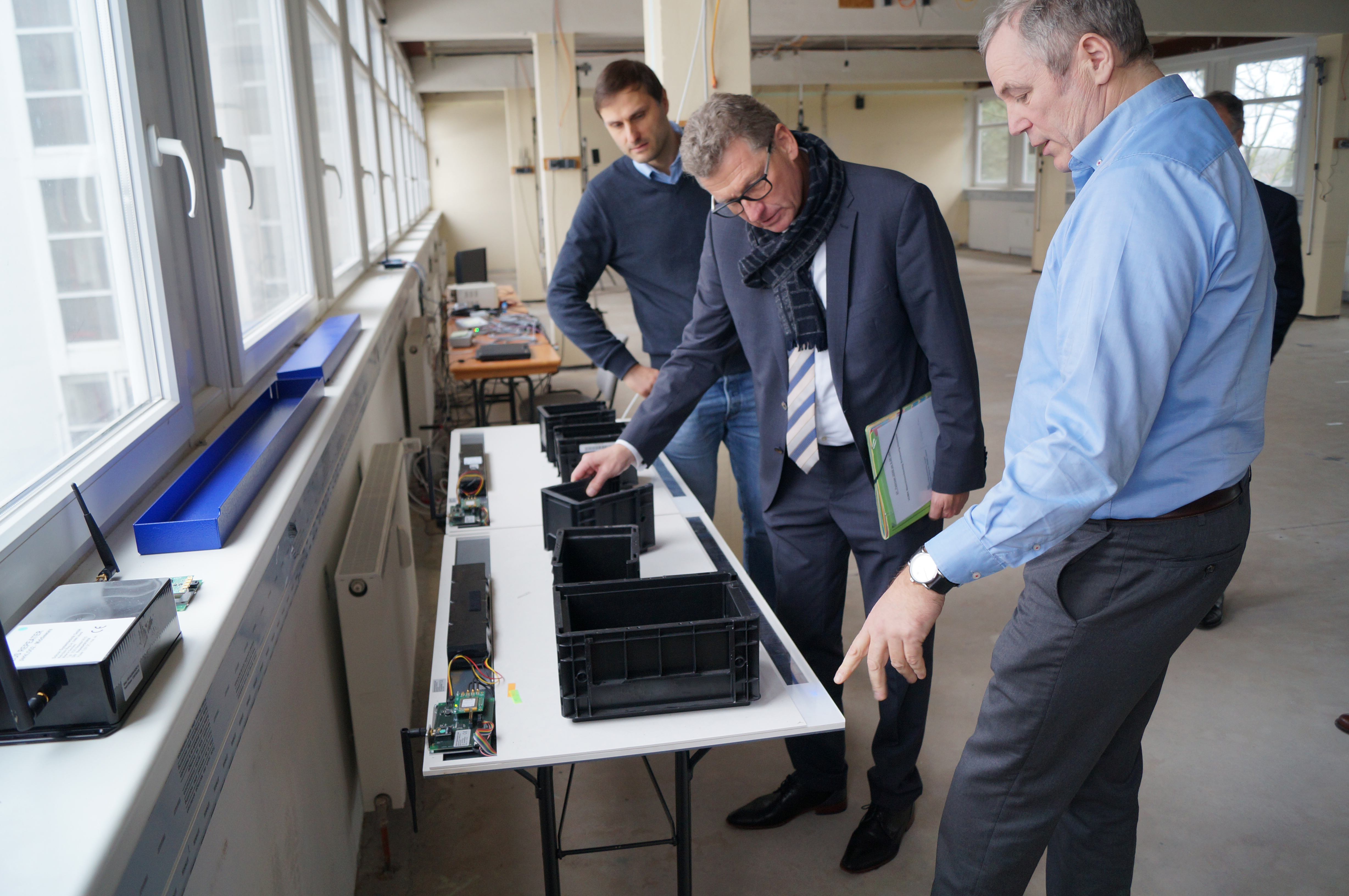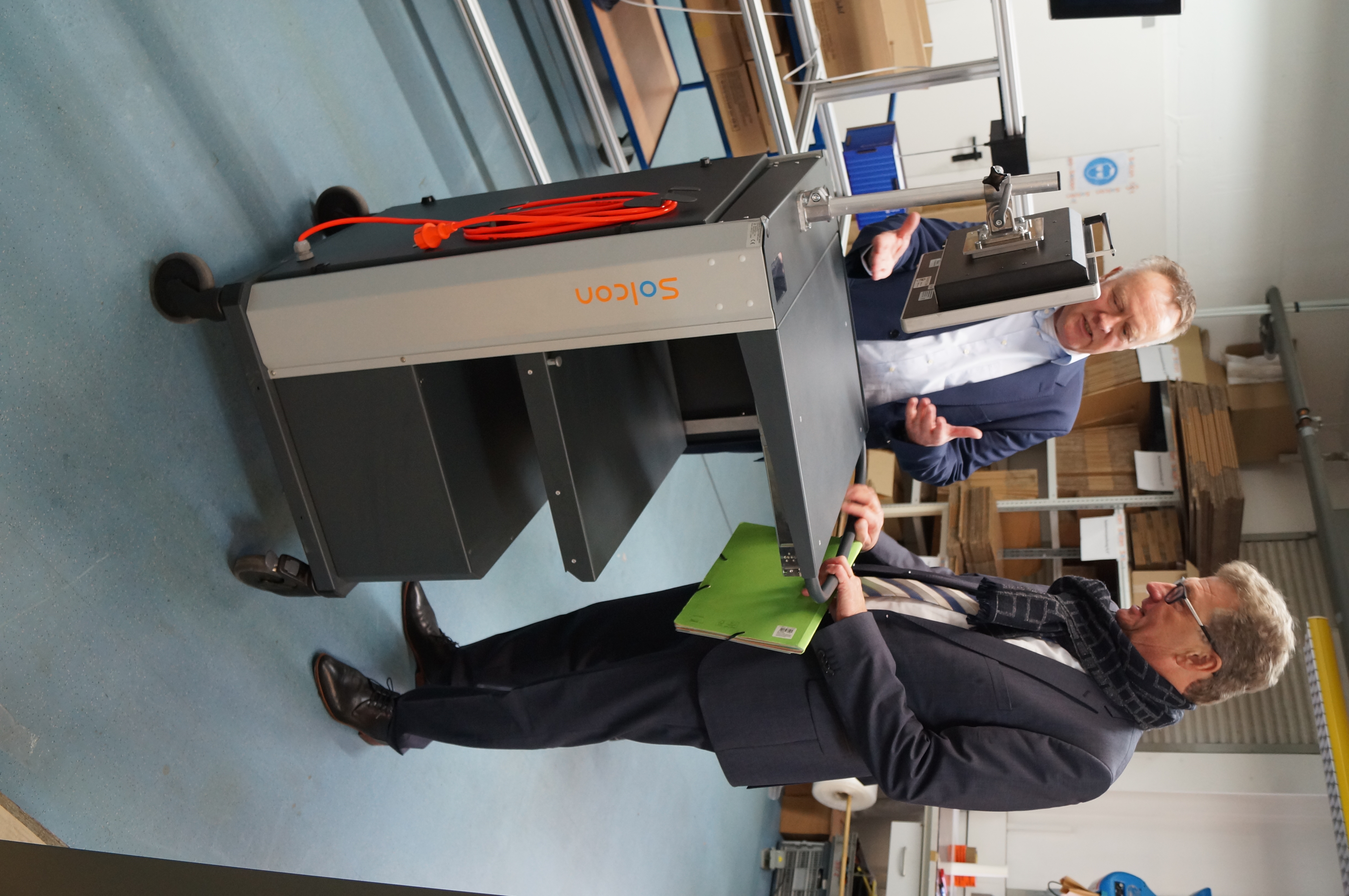 Als Hersteller kundenspezifischer Industrie-PC´s und mobiler Arbeitsstationen ist Solcon mit seiner Produktion in der Hansestadt Lübeck seit nunmehr über 2 Jahrzehnten in Europa bekannt. Auch hier steht das Unternehmen für Innovation und Qualität. Der Wirtschaftsminister zeigte sich vom Produkt- und Lösungsspektrum zum mobilen Arbeiten, autark von der Spannungsversorgung aus dem Stromnetz, angetan (vgl. Abbildung).
