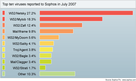 E-Mail Wurm: Von infizierten Rechnern aus können sich E-Mail- und Internet-Würmer millionenfach selbst verbreiten und so die Mail-Gateways in Unternehmen verstopfen