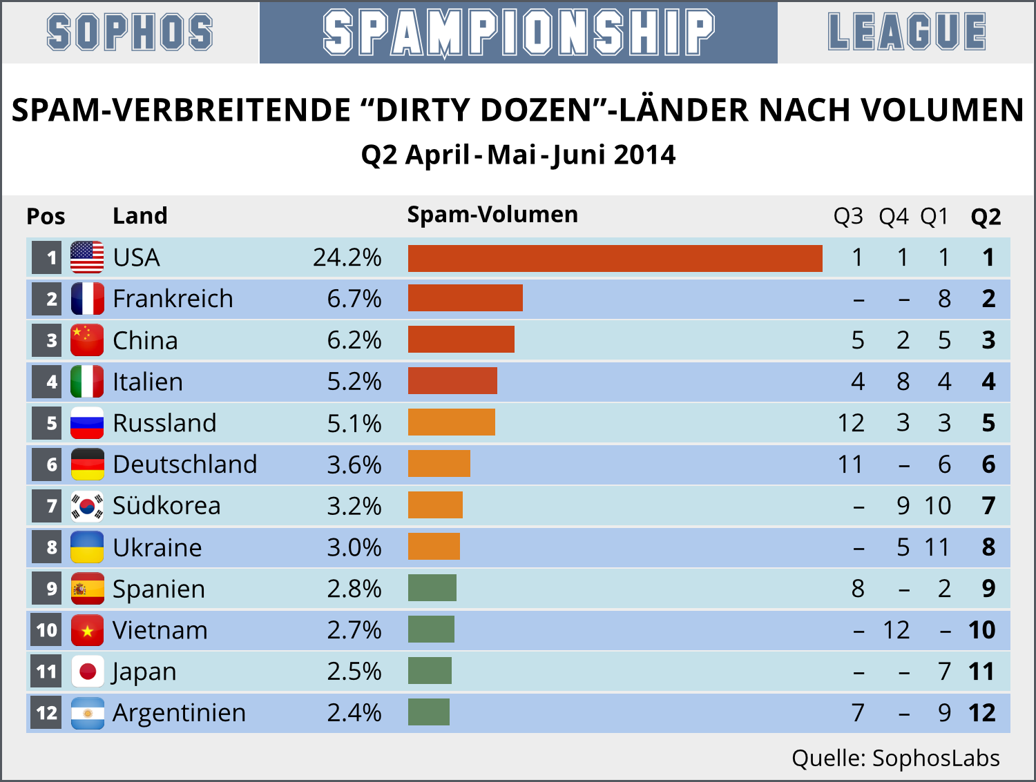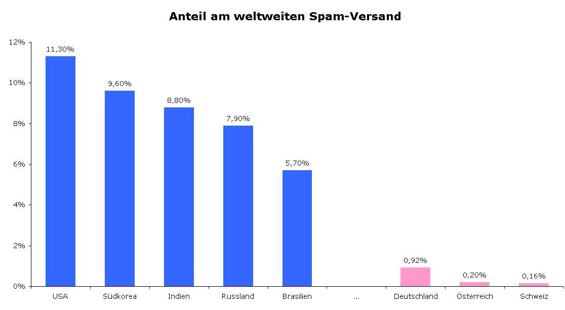 Diagramm Spam-Verteilung im 'Dreckigen Dutzend'