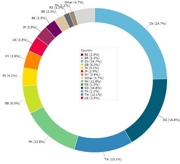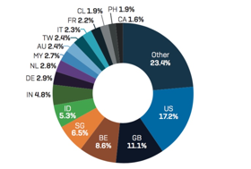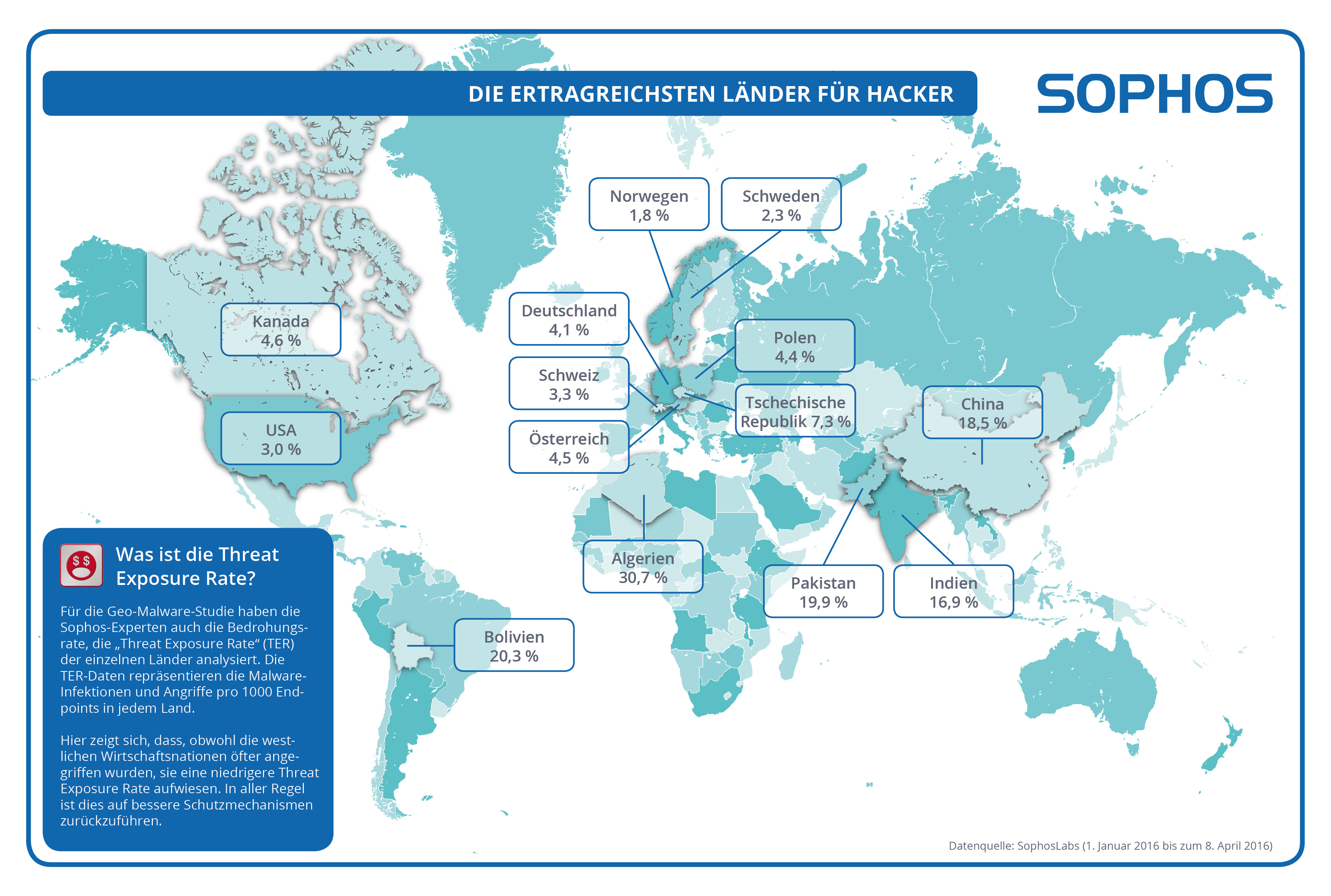Sophos: Verteilung der Malware-Seiten nach Ländern
