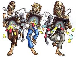 Botnet/Zombie-Netzwerk: Über gekaperte Computer, so genannte Zombie-PCs oder Botnets, versenden Cyberkriminelle massenweise Spam-Mails oder Schadprogramme