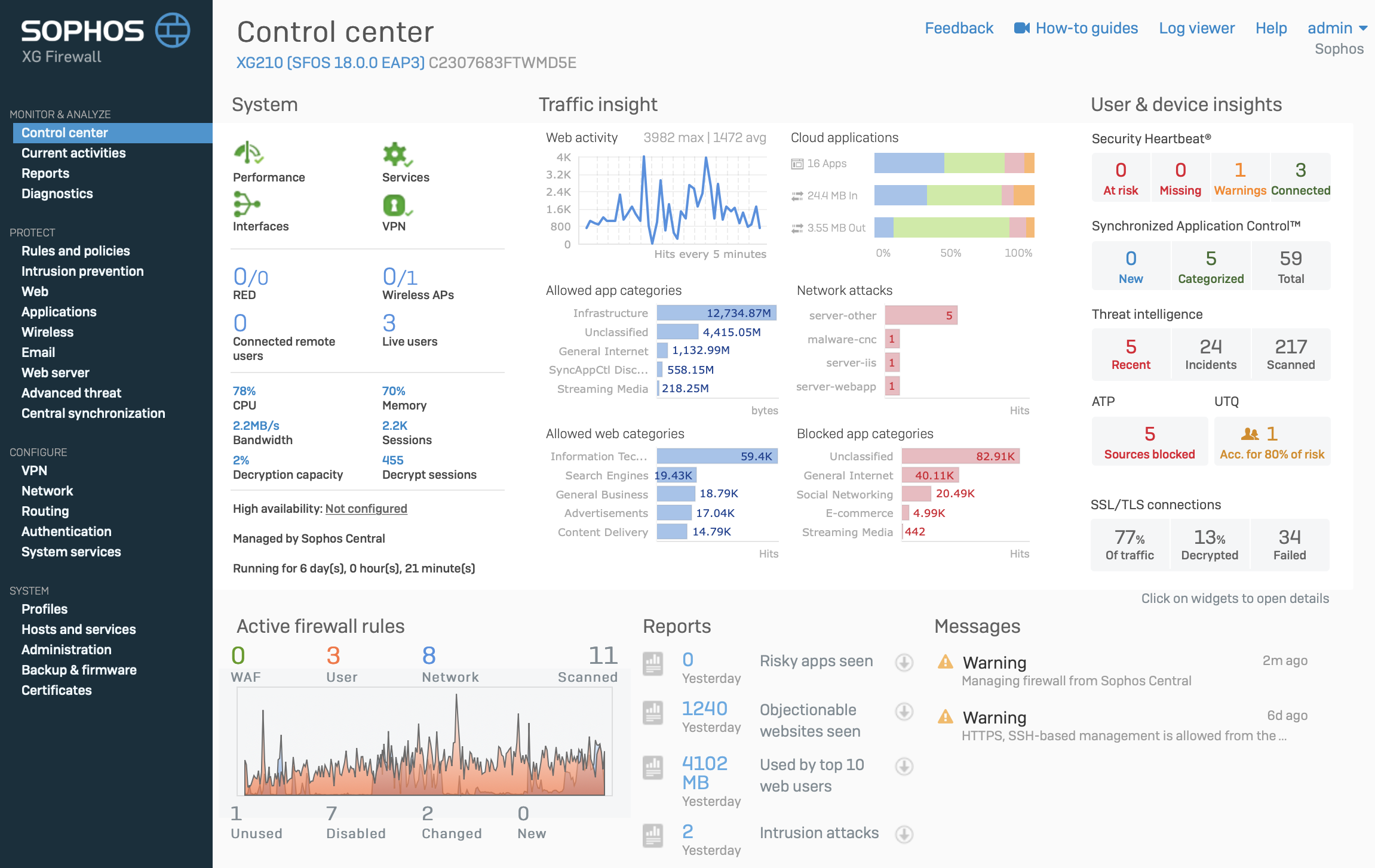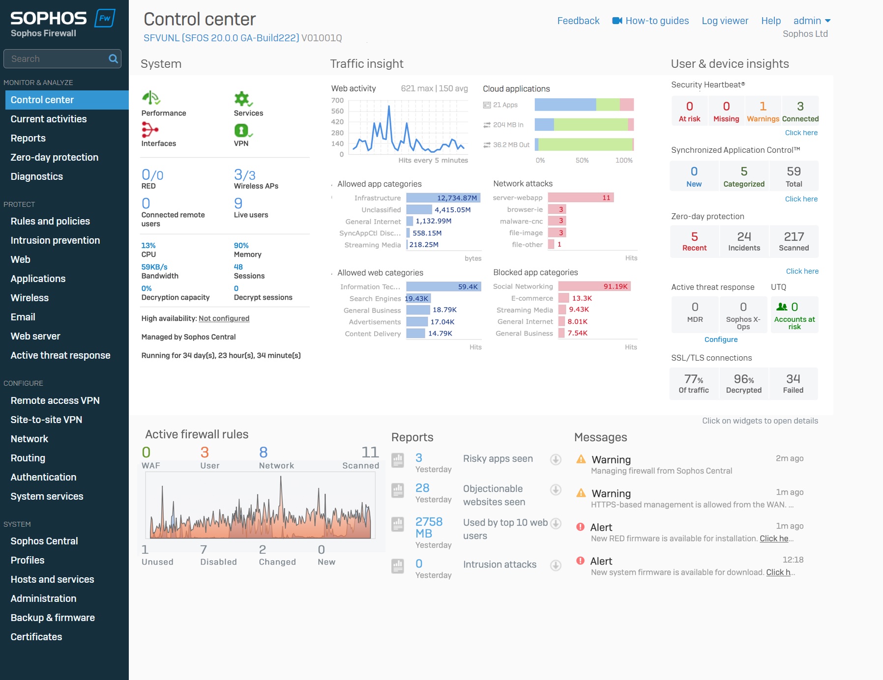 Sophos Firewall v20 - Control Center