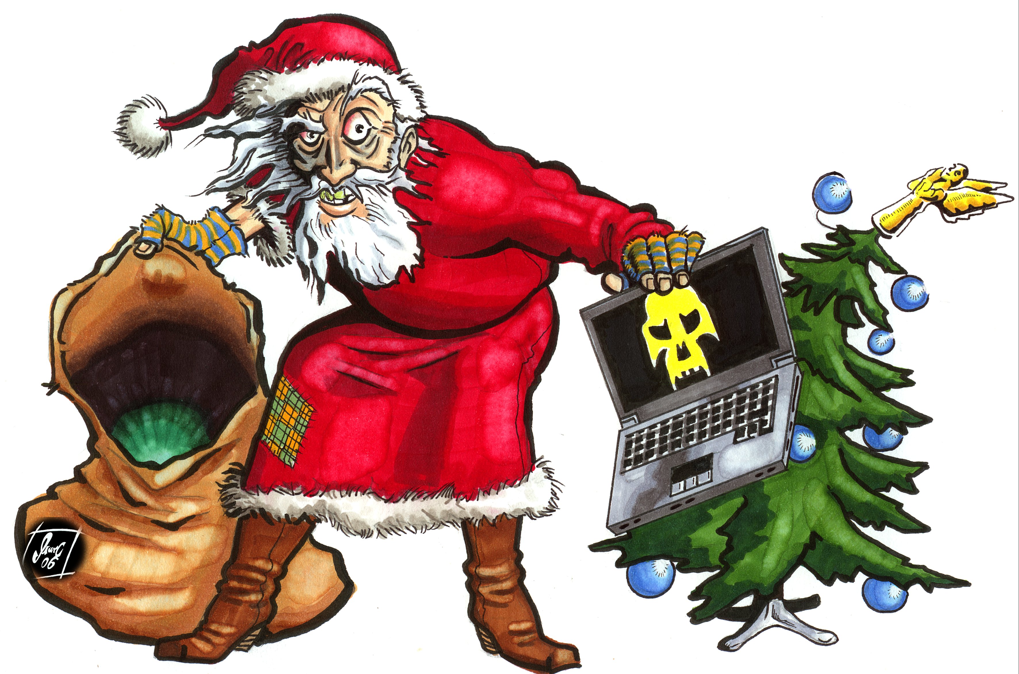 Karikatur zu IT-Sicherheitsbedrohungen zu Weihnachten