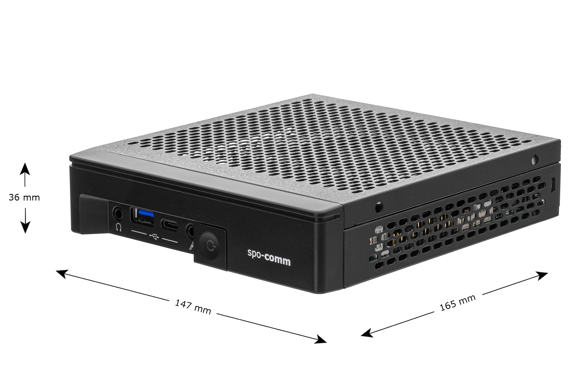 Der superkompakte Mini-PC bietet diverse Anschlüsse für unterschiedliche Anwendungsfälle. Neben zwei Audioanschlüssen (1x MIC-IN und 1x LINE-OUT) und einem USB 3.2 Gen1 auf dem Frontpanel des CORE 3, befinden sich auf der Rückseite gleich vier weitere USB-Ports (2x 3.2 Gen2, 2x 3.2 Gen1). Wie von spo-comm PCs gewohnt, lässt sich auch der CORE 3 optional mit Windows 11 Professional, Windows 10 IoT und Ubuntu ausstatten. Auch die Option für WiFi besteht. Aus diesem Grund lässt sich der CORE auch als Thin Client einsetzen.