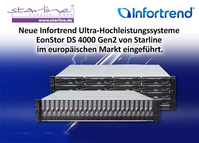Das Infortrend EonStor DS 4000 Gen2 ist bei der Starline Computer GmbH ab sofort verfügbar. Endkunden vermitteln wir gerne an unsere Wiederverkäufer.