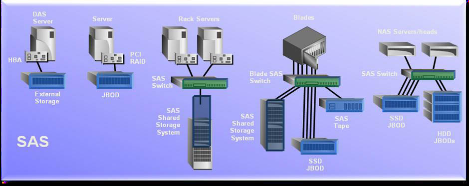 Mit 12 x 12 Gbit/s miniSAS x4 Anschlüssen ausgestattet (48 Lanes), eignet sich der Switch besonders zur preiswerten Vernetzung einzelner oder mehrerer Server mit einem oder mehreren, unabhängigen RAID-Systemen, Tape-Libraries oder anderen Datenspeicher-Systemen. So lassen sich auch Direct Attached Storage (DAS) zu einem kostengünstigen Speichernetzwerk ausbauen. Seine T10-Zoning-Funktion sorgt dafür, dass dabei einzelne Speicher-Ressourcen voneinander getrennt benutzt werden können. Solche Details lassen sich einfach über das im Lieferumfang enthaltenen Java-Tool SDM-GUI am zusätzlichen LAN-Port justieren.