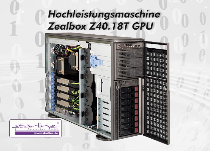 Starline hat speziell dafür einen Server aufgelegt, der im Vollausbau bis zu vier GPU-Karten aufnimmt und so parallele Berechnungen mit einigen tausend GigaFlops durchführt. Die geballte Rechen-Power kann damit die Trainingszeit etwa beim Deep Learning von mehreren Jahren auf nur wenige Tage verkürzen.