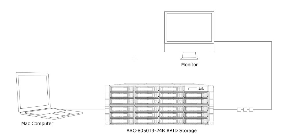 Das 12er beziehungsweise 24er-Rackmount-System lässt sich einfach in ein passendes Rack (19 Inch) einsetzen und benötigt zum Betrieb neben der Netzleitung nur noch ein dünnes Thunderbolt-Kabel (ein aktives Kabel ist im Lieferumfang enthalten). Darüber hinaus kann der Benutzer noch direkt einen Monitor via Displayport andocken. Zur Administration haben die Systeme Ethernet-Buchsen eingebaut, über die sich der interne Web-Management-Oberfläche einfach konfigurieren lässt – allerdings ist das auch per Thunderbolt möglich. Wichtige Einstellungen kann der Benutzer zudem am LCD Control Panel vornehmen.