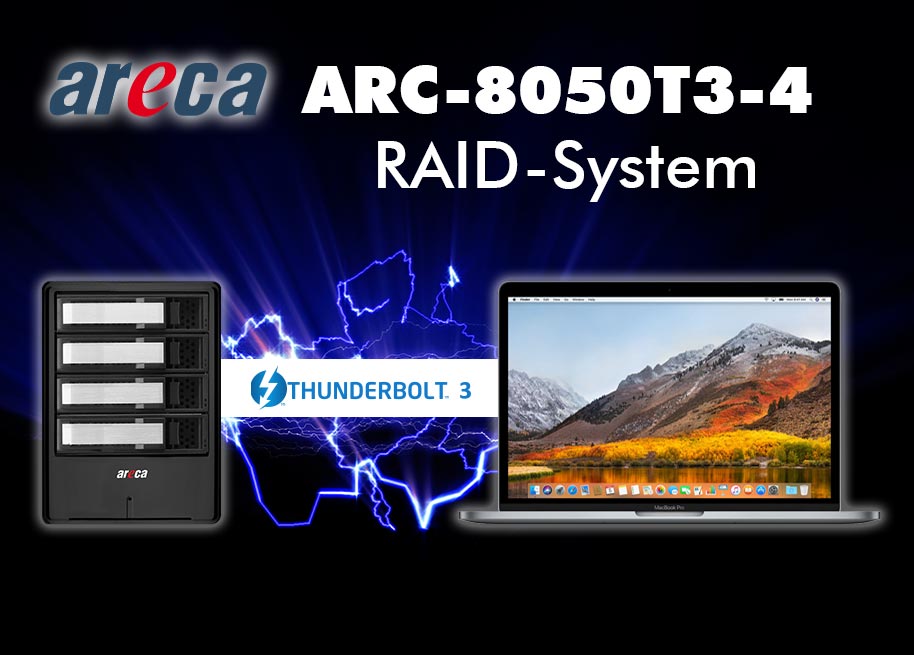 Potente Windows- und Macintosh-Notebooks sind zwar schnell, bieten aber mit meist nur einem Terabyte-Speicher nicht genug Platz für datenintensive Anwendungen wie etwa dem 4K-Videoschnitt oder dem Foto Composing mit Rohdaten. Von Areca kommt nun – speziell für Thunderbolt-Anwender mit erhöhtem Datenaufkommen – ein transportables, hochperformantes und einfach zu bedienendes RAID-System: Das ARC-8050T3-4 nimmt vier SAS/SATA-HDDs oder -SSDs auf, die bis zu 48 Terabyte Bruttokapazität liefern.