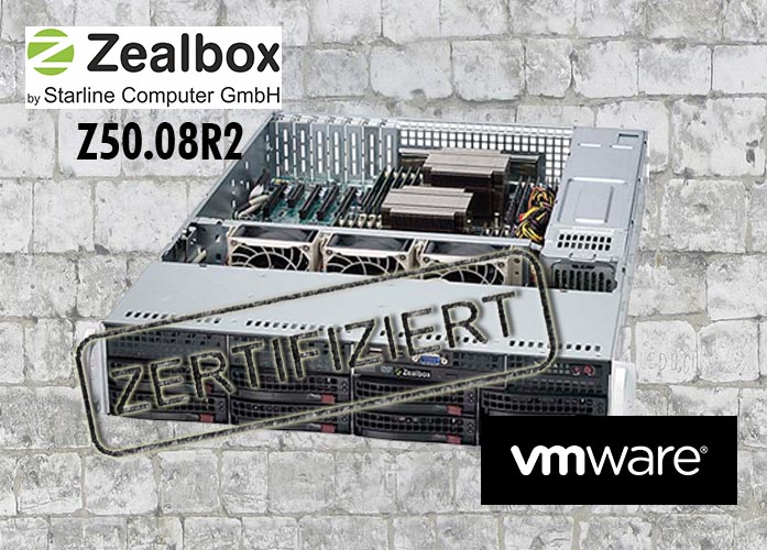 (pressebox) (Kirchheim/Teck, 03.01.2018) Aus dem nagelneuen Zealbox-Line-Up hat bereits der erste Kandidat seine Weihen als VMware-Partner erhalten. Der flexibel einsetzbare Server Z50.11-08R2 darf nun offiziell zum erlauchten Kreis der unterstützenden Systeme von VMware vSphere 6.5 und 6.5 U1 gezählt werden. Er reiht sich damit nahtlos in die bereits bestehende Riege der potenten Virtualisierungsplattformen ein, die Starline für datenhungrige Nutzer aufgelegt hat.